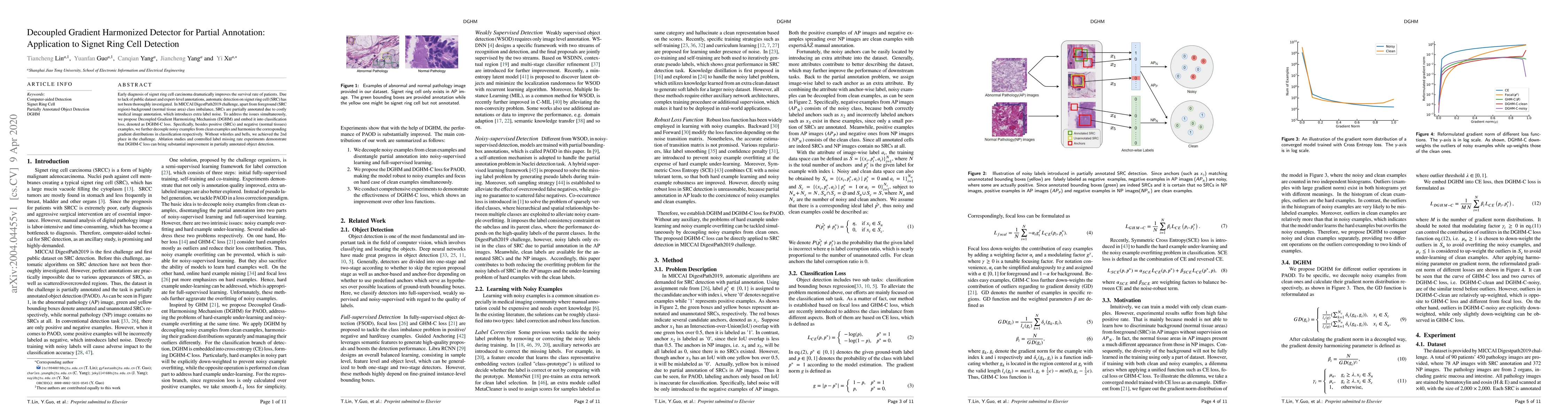 This paper proposes a Decoupled Gradient Harmonizing Mechanism (DGHM) to improve the detection of signet ring cell carcinoma in medical images, addressing class imbalance and partial annotation issues. The DGHM-C loss effectively separates noisy and clean examples, improving detection accuracy and achieving 2nd place in the MICCAI DigestPath2019 challenge.