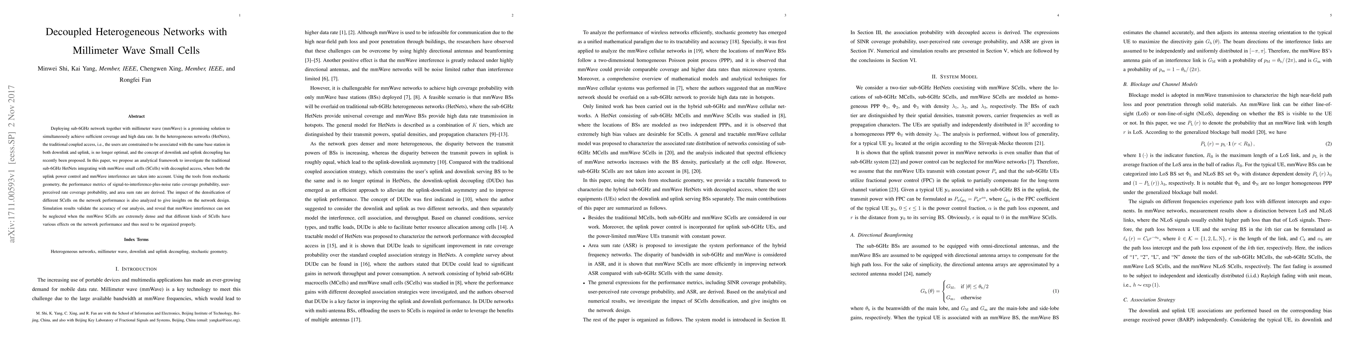 This paper proposes an analytical framework to study heterogeneous networks integrating sub-6GHz and millimeter wave small cells with decoupled access, considering uplink power control and mmWave interference. Simulation results show that mmWave interference significantly impacts performance when small cells are densely deployed, highlighting the need for proper organization of different SCells.