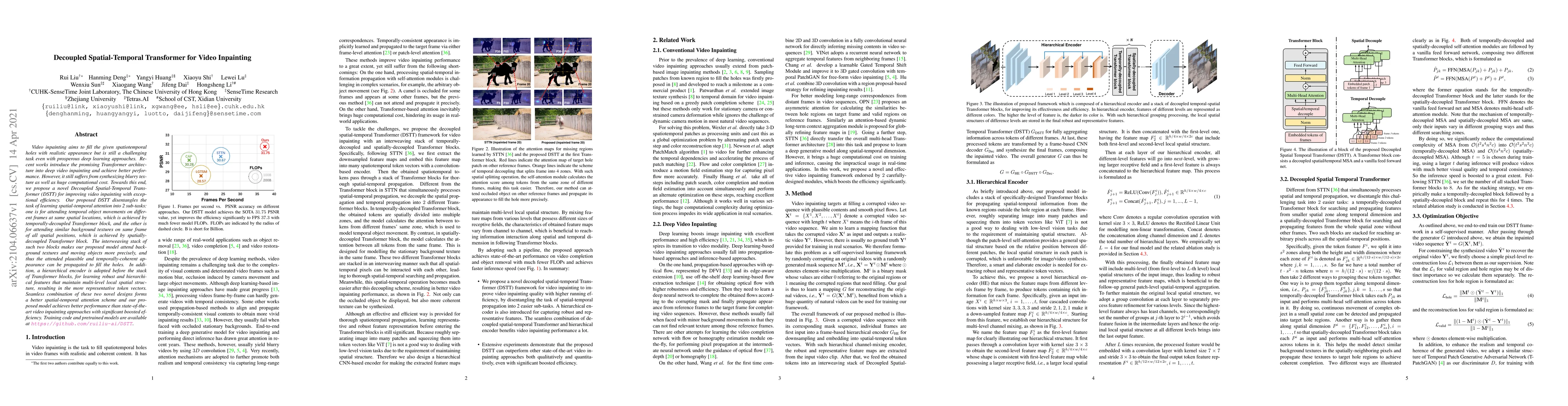 The paper proposes a novel Decoupled Spatial-Temporal Transformer (DSTT) for video inpainting, which disentangles the task into temporally-decoupled and spatially-decoupled Transformer blocks. It also introduces a hierarchical encoder for learning robust and hierarchical features.