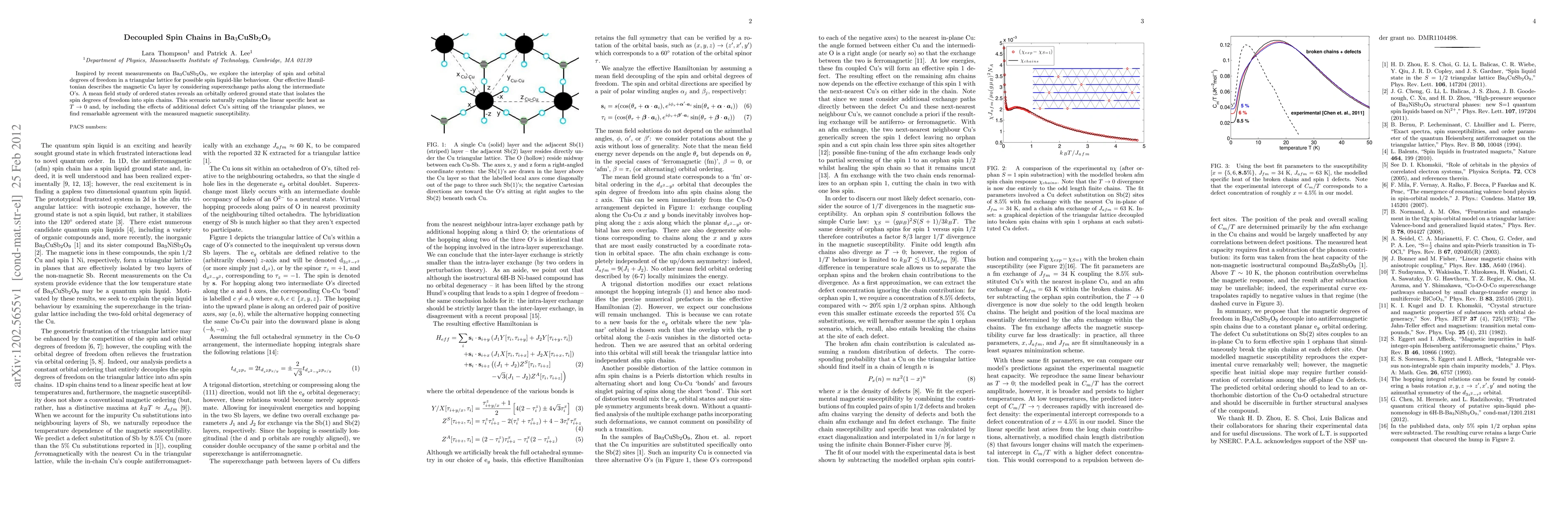 Inspired by recent measurements on Ba$_3$CuSb$_2$O$_9$, we explore the interplay of spin and orbital degrees of freedom in a triangular lattice for possible spin liquid-like behaviour. Our effective Hamiltonian describes the magnetic Cu layer by considering superexchange paths along the intermediate O's. A mean field study of ordered states reveals an orbitally ordered ground state that isolates the spin degrees of freedom into spin chains. This scenario naturally explains the linear specific heat as $T\to 0$ and, by including the effects of additional defect Cu's sitting off the triangular planes, we find remarkable agreement with the measured magnetic susceptibility.