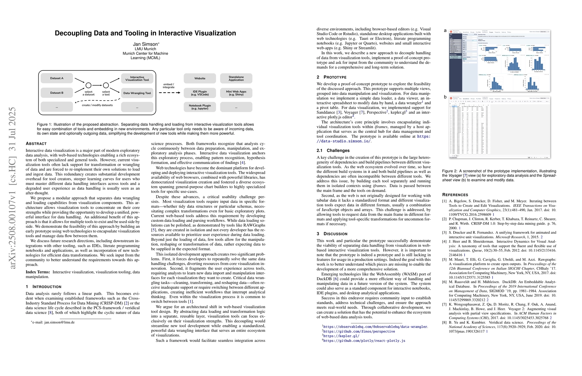 Interactive data visualization is a major part of modern exploratory data analysis, with web-based technologies enabling a rich ecosystem of both specialized and general tools. However, current visualization tools often lack support for transformation or wrangling of data and are forced to re-implement their own solutions to load and ingest data. This redundancy creates substantial development overhead for tool creators, steeper learning curves for users who must master different data handling interfaces across tools and a degraded user experience as data handling is usually seen as an after-thought. We propose a modular approach that separates data wrangling and loading capabilities from visualization components. This architecture allows visualization tools to concentrate on their core strengths while providing the opportunity to develop a unified, powerful interface for data handling. An additional benefit of this approach is that it allows for multiple tools to exist and be used side by side. We demonstrate the feasibility of this approach by building an early prototype using web technologies to encapsulate visualization tools and manage data flow between them. We discuss future research directions, including downstream integrations with other tooling, such as IDEs, literate programming notebooks and applications, as well as incorporation of new technologies for efficient data transformations. We seek input from the community to better understand the requirements towards this approach.