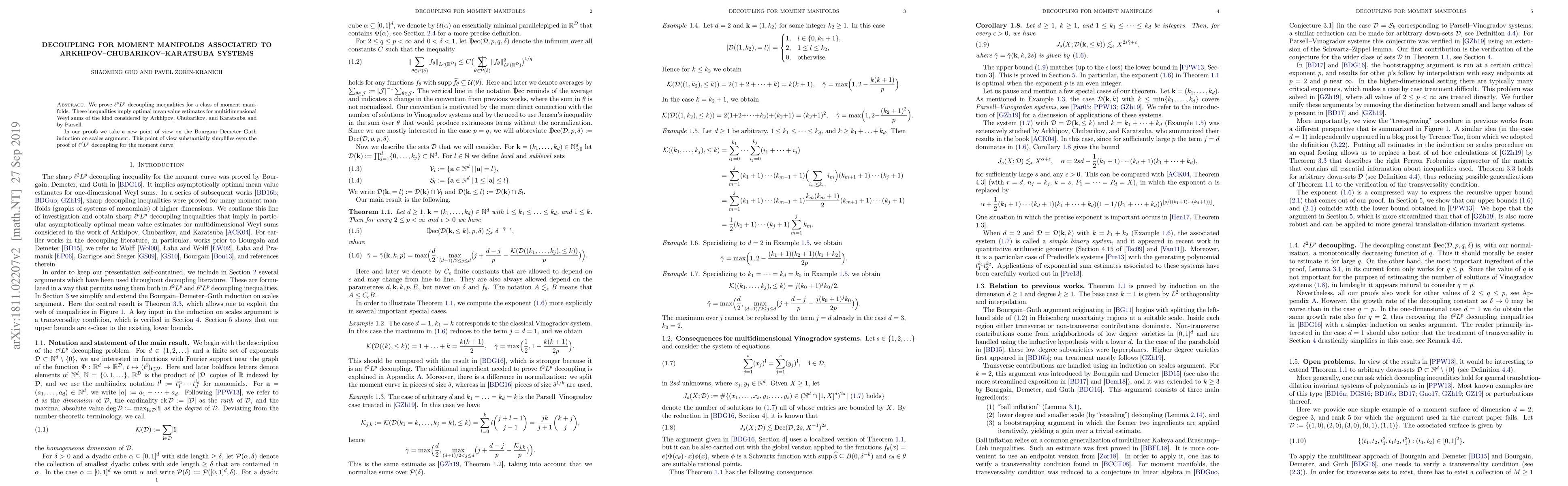We prove $\ell^{p}L^{p}$ decoupling inequalities for a class of moment manifolds. These inequalities imply optimal mean value estimates for multidimensional Weyl sums of the kind considered by Arkhipov, Chubarikov, and Karatsuba and by Parsell. In our proofs we take a new point of view on the Bourgain--Demeter--Guth induction on scales argument. This point of view substantially simplifies even the proof of $\ell^{2}L^{p}$ decoupling for the moment curve.