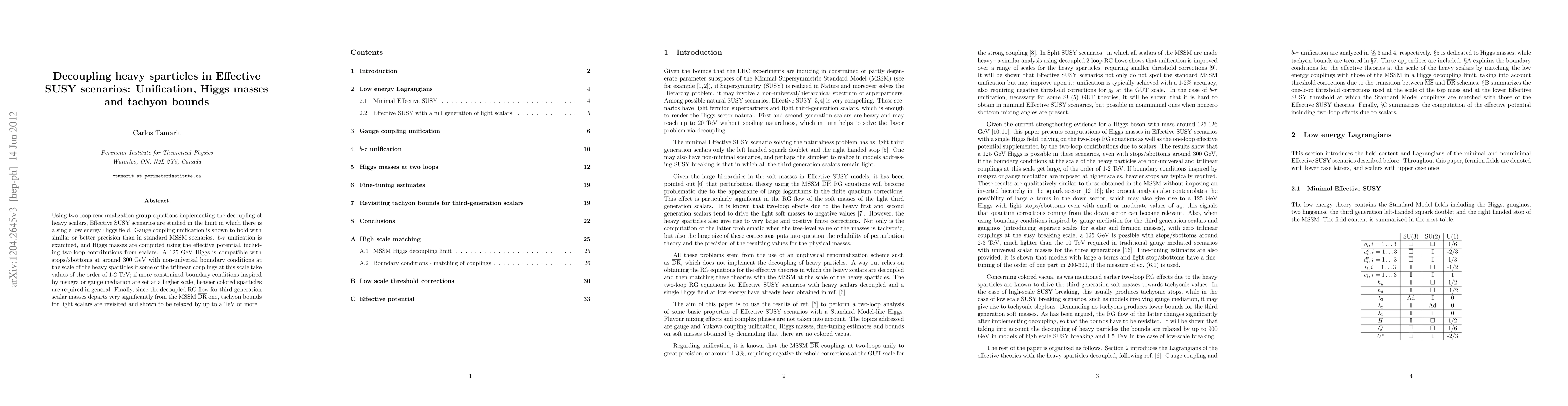 This paper explores Effective SUSY scenarios where heavy scalars are decoupled, demonstrating gauge unification and Higgs mass consistency. It finds that a 125 GeV Higgs can coexist with 300 GeV stops/sbottoms under non-universal boundary conditions, while tachyon bounds for light scalars are significantly relaxed.
