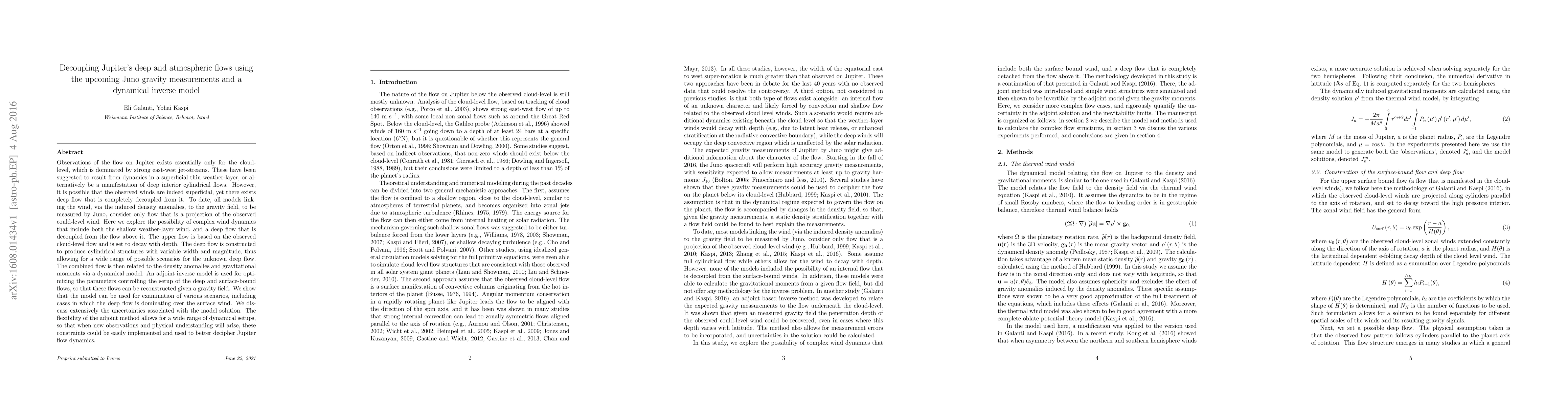 A new model suggests that Jupiter's deep flow may be decoupled from its atmospheric flow, which is only directly observable at the cloud level. This study uses Juno gravity measurements to explore possible scenarios of wind dynamics.