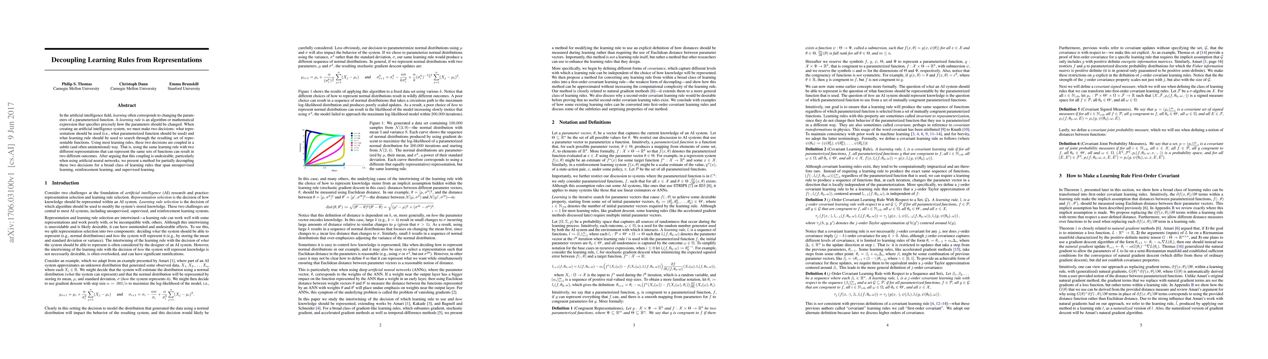 In the artificial intelligence field, learning often corresponds to changing the parameters of a parameterized function. A learning rule is an algorithm or mathematical expression that specifies precisely how the parameters should be changed. When creating an artificial intelligence system, we must make two decisions: what representation should be used (i.e., what parameterized function should be used) and what learning rule should be used to search through the resulting set of representable functions. Using most learning rules, these two decisions are coupled in a subtle (and often unintentional) way. That is, using the same learning rule with two different representations that can represent the same sets of functions can result in two different outcomes. After arguing that this coupling is undesirable, particularly when using artificial neural networks, we present a method for partially decoupling these two decisions for a broad class of learning rules that span unsupervised learning, reinforcement learning, and supervised learning.