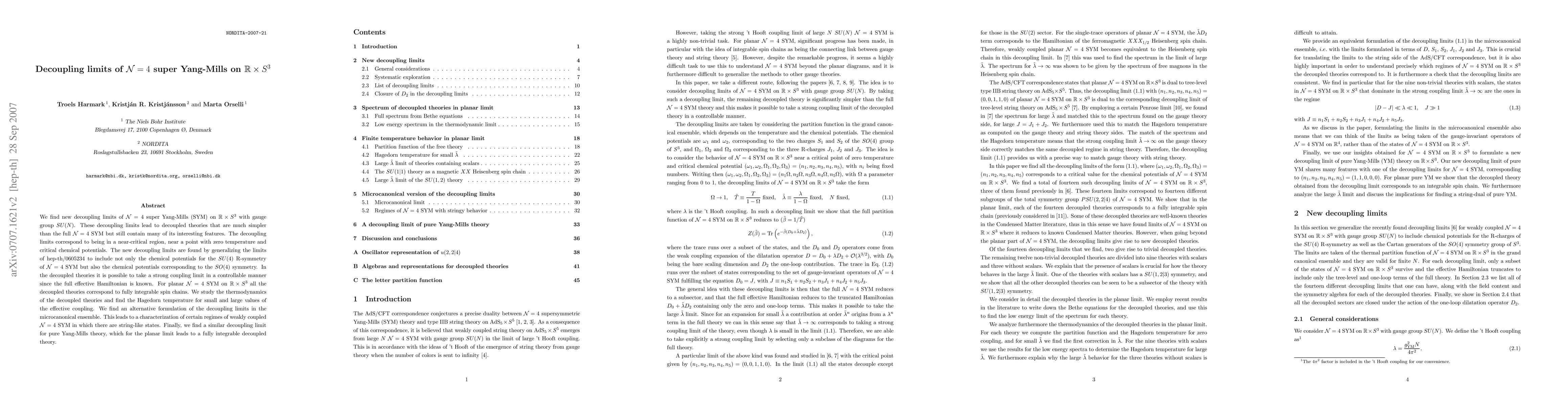 This paper introduces new decoupling limits for N=4 super Yang-Mills on R x S^3, revealing simpler theories with many features of the full theory. These limits are explored near-critical conditions, leading to integrable spin chains and providing insights into thermodynamics and weakly coupled regimes.