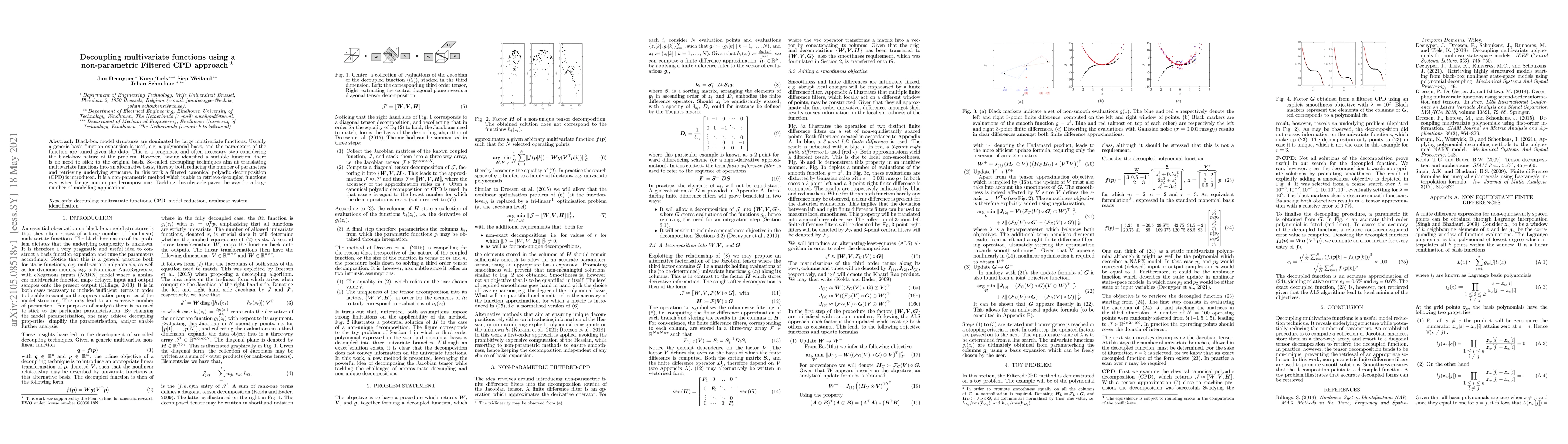 Black-box model structures are dominated by large multivariate functions. Usually a generic basis function expansion is used, e.g. a polynomial basis, and the parameters of the function are tuned given the data. This is a pragmatic and often necessary step considering the black-box nature of the problem. However, having identified a suitable function, there is no need to stick to the original basis. So-called decoupling techniques aim at translating multivariate functions into an alternative basis, thereby both reducing the number of parameters and retrieving underlying structure. In this work a filtered canonical polyadic decomposition (CPD) is introduced. It is a non-parametric method which is able to retrieve decoupled functions even when facing non-unique decompositions. Tackling this obstacle paves the way for a large number of modelling applications.