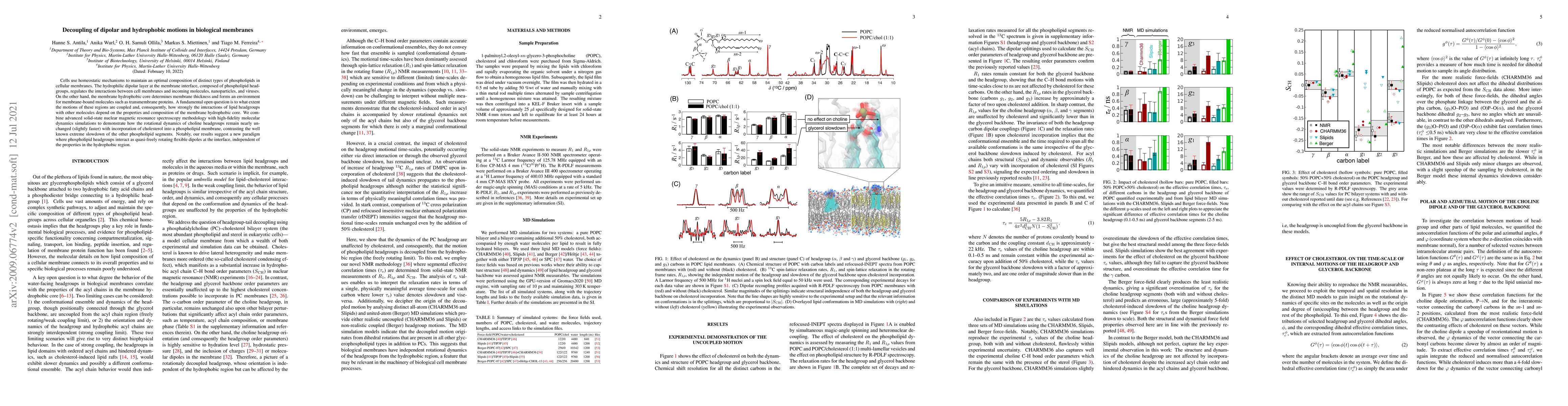 Cells use homeostatic mechanisms to maintain an optimal composition of distinct types of phospholipids in cellular membranes. The hydrophilic dipolar layer at the membrane interface, composed of phospholipid headgroups, regulates the interactions between cell membranes and incoming molecules, nanoparticles, and viruses. On the other hand, the membrane hydrophobic core determines membrane thickness and forms an environment for membrane-bound molecules such as transmembrane proteins. A fundamental open question is to what extent the motions of these regions are coupled and, consequently, how strongly the interactions of lipid headgroups with other molecules depend on the properties and composition of the membrane hydrophobic core. We combine advanced solid-state nuclear magnetic resonance spectroscopy methodology with high-fidelity molecular dynamics simulations to demonstrate how the rotational dynamics of choline headgroups remain nearly unchanged (slightly faster) with incorporation of cholesterol into a phospholipid membrane, contrasting the well known extreme slowdown of the other phospholipid segments. Notably, our results suggest a new paradigm where phospholipid headgroups interact as quasi-freely rotating flexible dipoles at the interface, independent of the properties in the hydrophobic region.