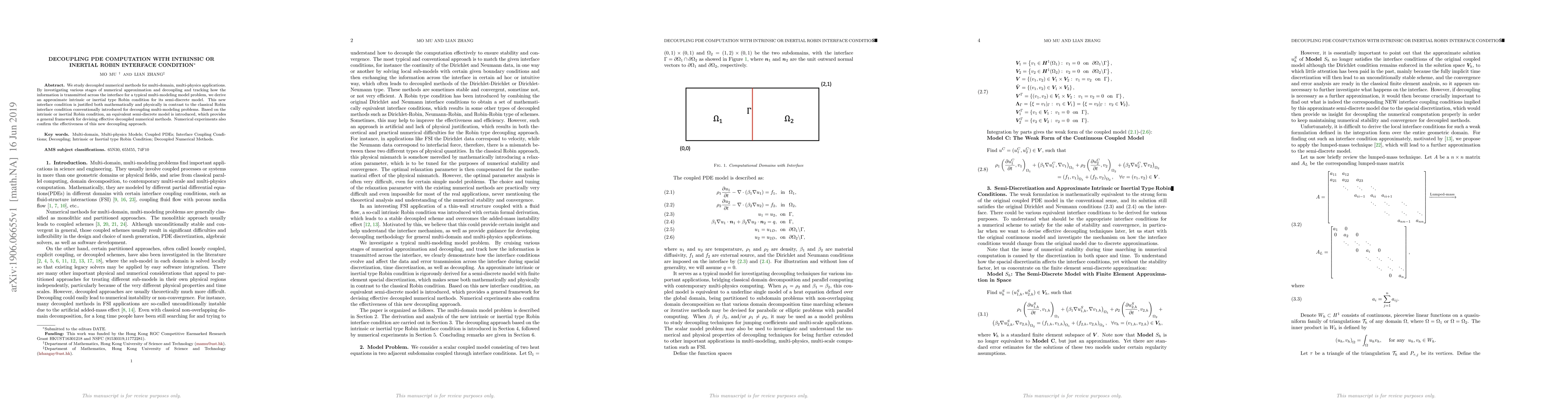 This paper proposes a novel intrinsic or inertial Robin condition for decoupling numerical methods in multi-domain, multi-physics applications. It provides a new mathematical and physical justification for this condition and demonstrates its effectiveness through numerical experiments.