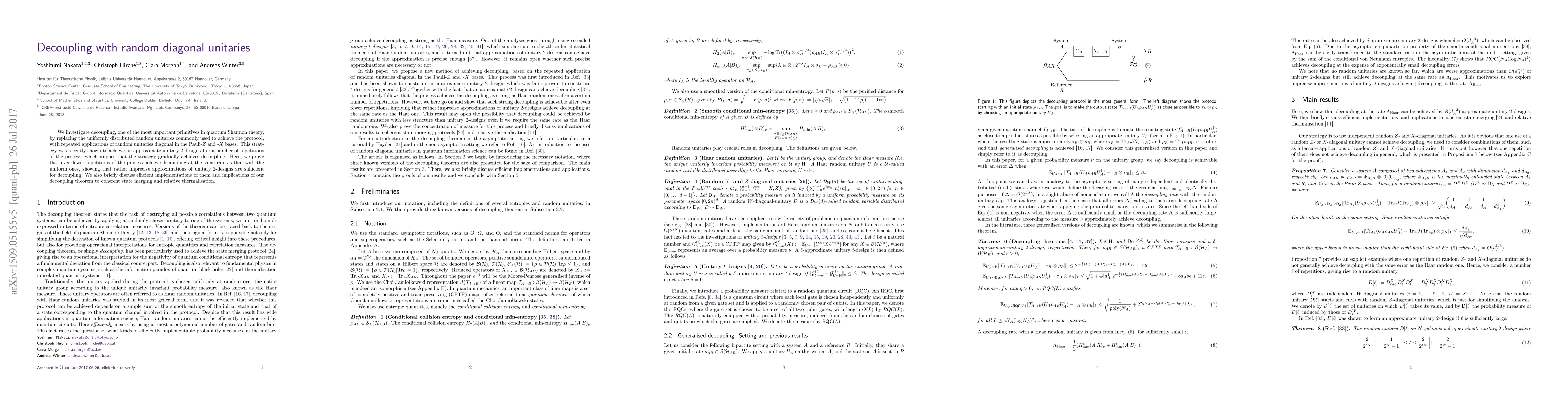 This paper demonstrates that using repeated applications of random diagonal unitaries in the Pauli-$Z$ and -$X$ bases can achieve decoupling with fewer iterations than previously required with uniform random unitaries, suggesting that imprecise unitary $2$-designs are sufficient for decoupling. It also discusses practical implementations and implications for coherent state merging and relative thermalisation.