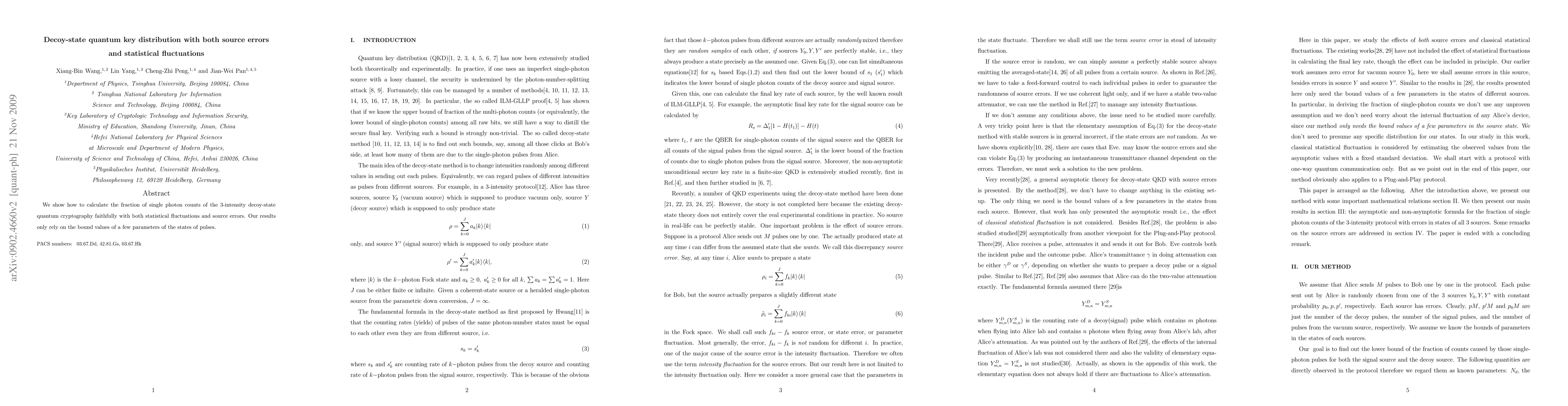 This paper demonstrates a method to calculate the reliability of quantum key distribution with decoy states, accounting for both source errors and statistical fluctuations, using only a few parameters.