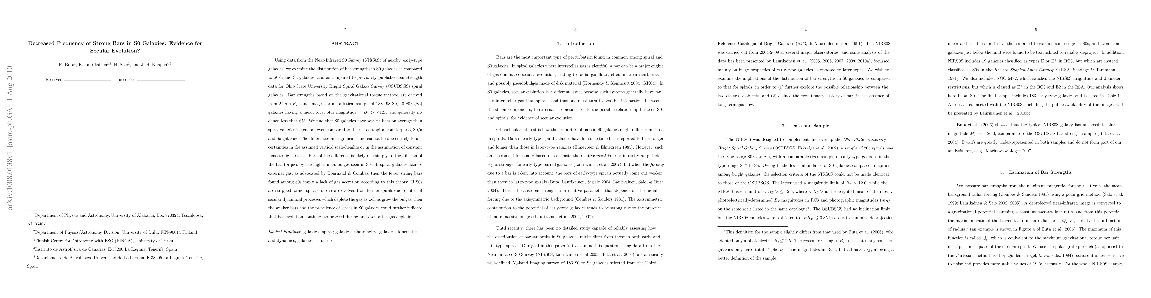 galaxies, we examine the distribution of bar strengths in S0 galaxies as