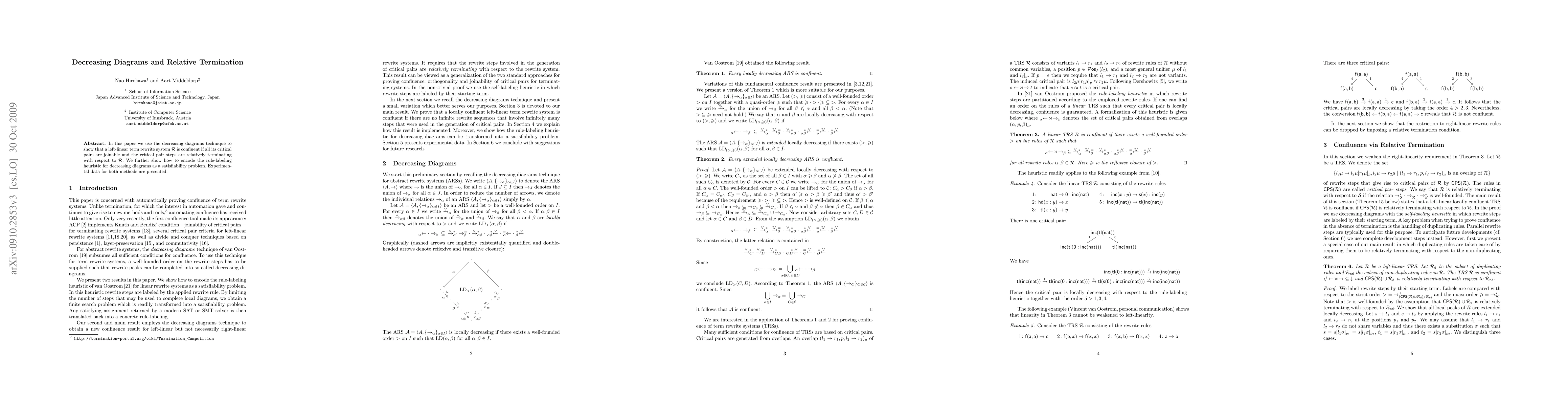 This paper demonstrates that a left-linear term rewrite system is confluent if all its critical pairs are joinable and the steps are relatively terminating. It also encodes the rule-labeling heuristic for decreasing diagrams as a satisfiability problem, with experimental results provided.