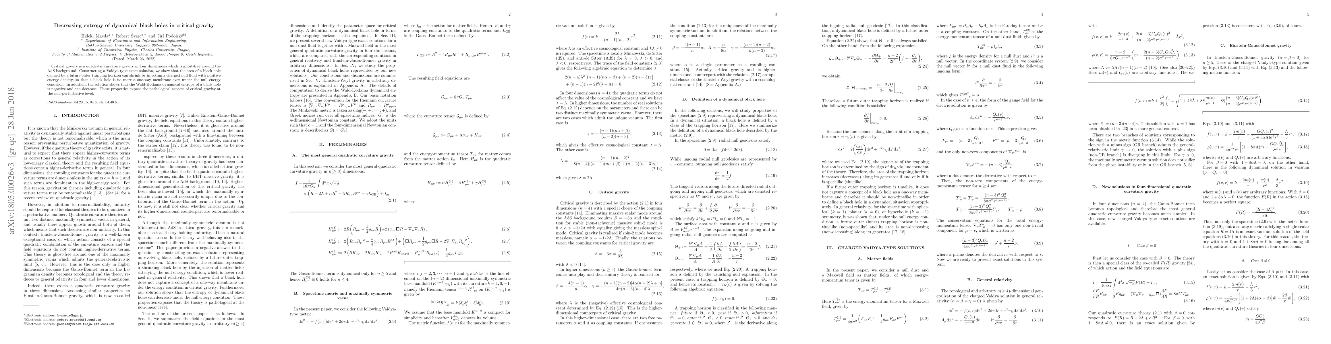 Critical gravity is a quadratic curvature gravity in four dimensions which is ghost-free around the AdS background. Constructing a Vaidya-type exact solution, we show that the area of a black hole defined by a future outer trapping horizon can shrink by injecting a charged null fluid with positive energy density, so that a black hole is no more a one-way membrane even under the null energy condition. In addition, the solution shows that the Wald-Kodama dynamical entropy of a black hole is negative and can decrease. These properties expose the pathological aspects of critical gravity at the non-perturbative level.