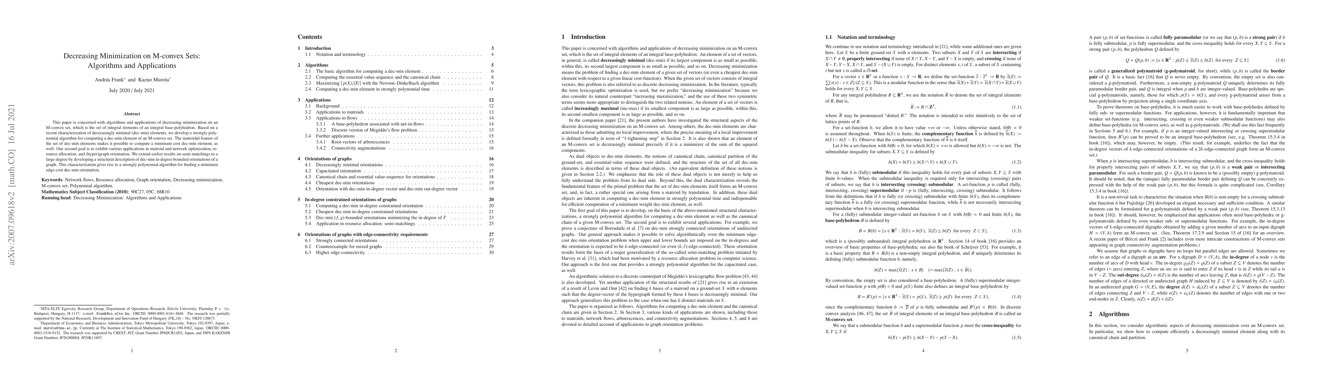 This paper develops a strongly polynomial algorithm for finding decreasingly minimal elements in M-convex sets and applies it to matroid and network optimization, resource allocation, and graph orientation. It also introduces a structural description for minimum cost dec-min orientations in graphs.