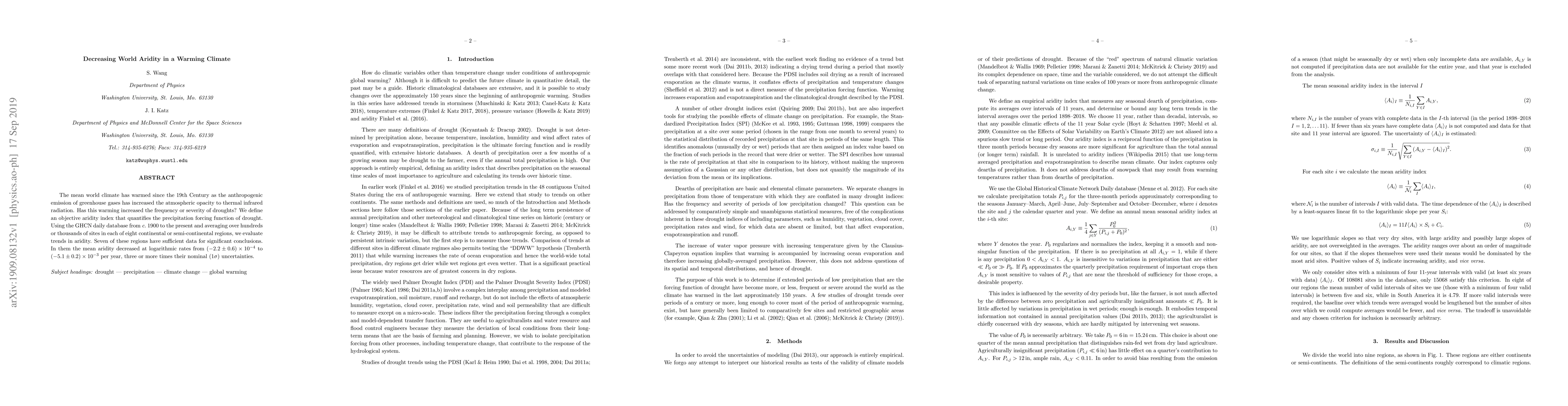 The global climate has warmed since 1900, but surprisingly, this warming trend is associated with a decrease in aridity, meaning drier conditions, in seven out of eight continental regions studied.