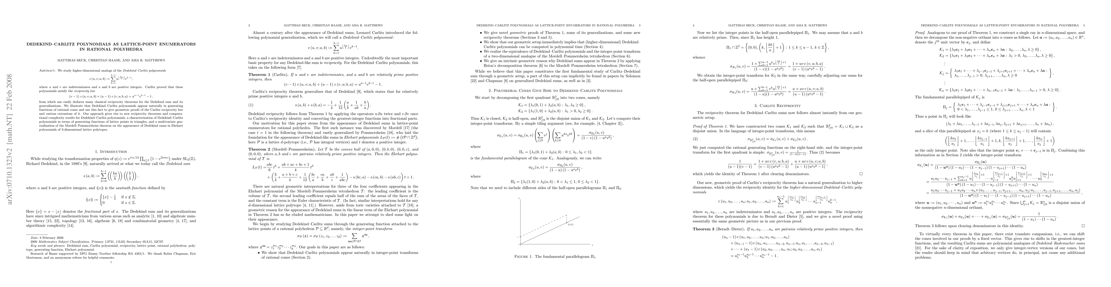 Research paper explores the role of Dedekind-Carlitz polynomials in enumerating lattice points in rational polyhedra, leading to new reciprocity theorems and insights into their computational complexity.