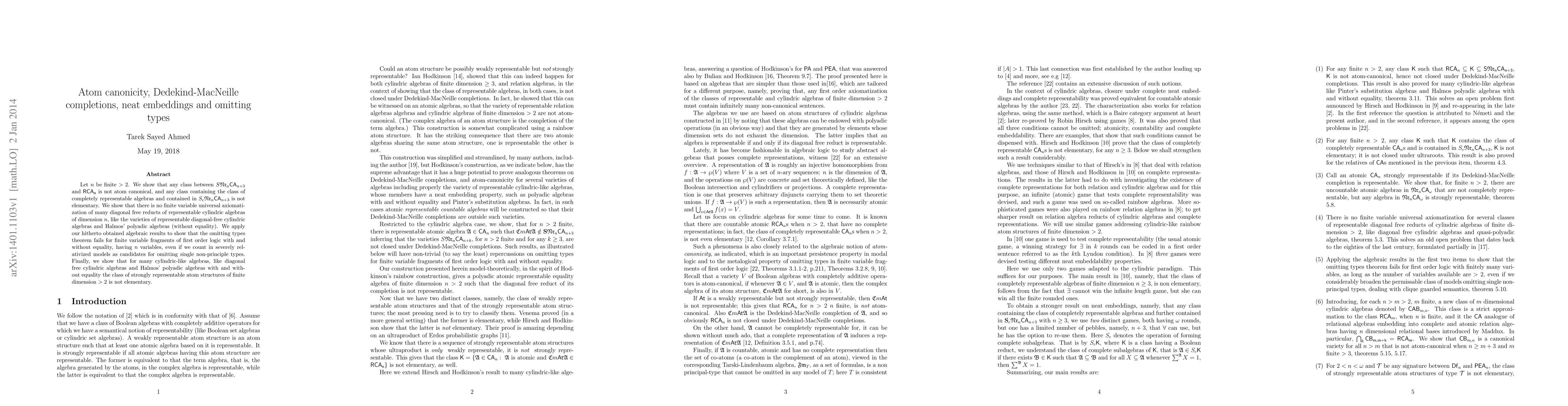 The paper demonstrates that classes of certain algebraic structures, including cylindric algebras and polyadic algebras, lack atom canonicity and elementary properties. It also proves the failure of the omitting types theorem for finite variable fragments of first-order logic with these structures, showing that no finite universal axiomatization exists for many diagonal-free reducts of representable cylindric algebras.