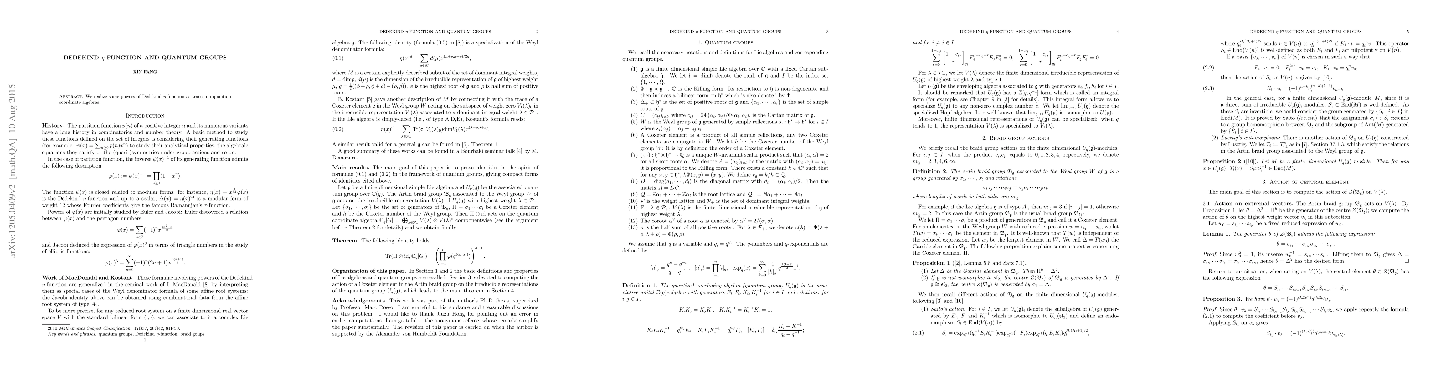 Summary: This paper demonstrates that certain powers of the Dedekind $\eta$-function can be represented as traces on quantum coordinate algebras, linking classical number theory to quantum group theory.