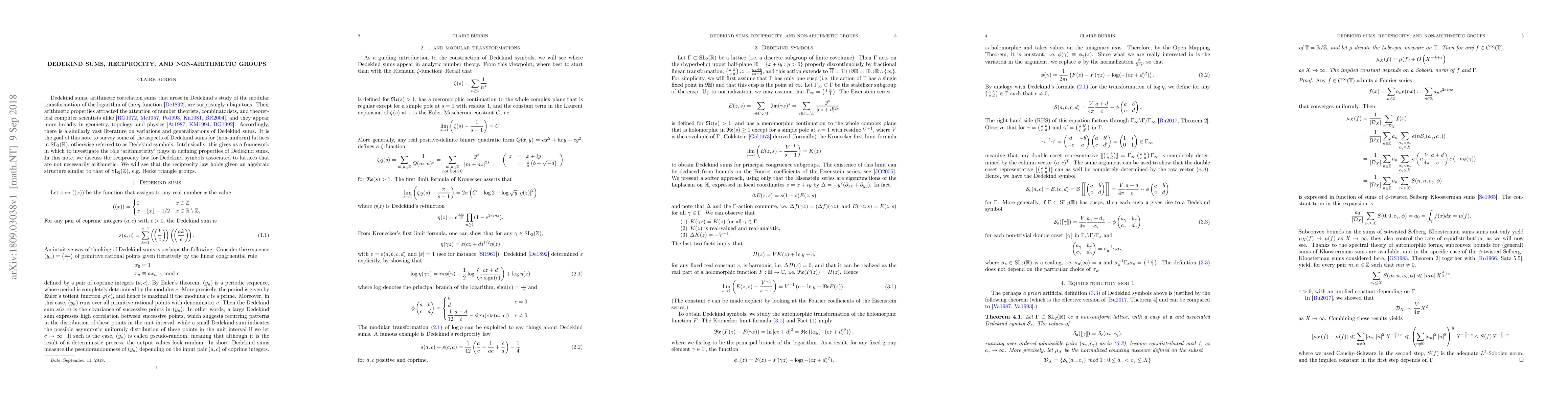 Dedekind sums, arithmetic correlation sums that arose in Dedekind's study of the modular transformation of the logarithm of the eta-function, are surprisingly ubiquitous. Their arithmetic properties attracted the attention of number theorists, combinatorists, and theoretical computer scientists alike, and they appear more broadly in geometry, topology, and physics. Accordingly, there is a similarly vast literature on variations and generalizations of Dedekind sums. This note surveys recent developments of some aspects of Dedekind sums for (non-uniform) lattices in SL_2(R), otherwise referred to as Dedekind symbols.