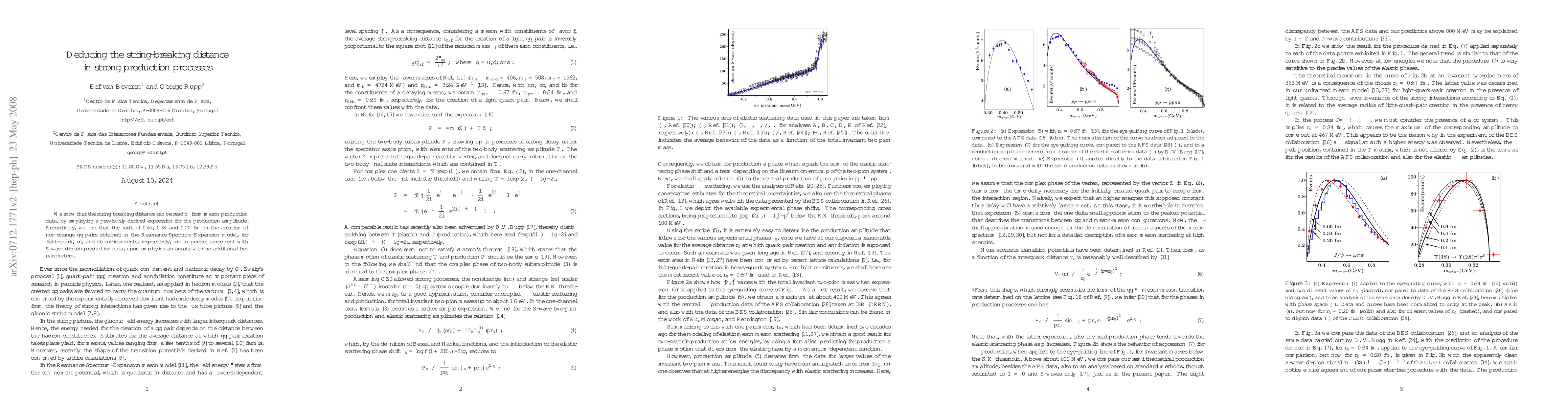 We show that the string-breaking distance can be read from meson-production data, by employing a previously derived expression for the production amplitude. Accordingly, we find that the radii of 0.67, 0.34 and 0.20 fm for the creation of non-strange q-qbar pairs obtained in the Resonance-Spectrum-Expansion model, for light-quark, c-cbar, and b-bbar environments, respectively, are in perfect agreement with S-wave di-pion production data, upon employing an ansatz with no additional free parameters.