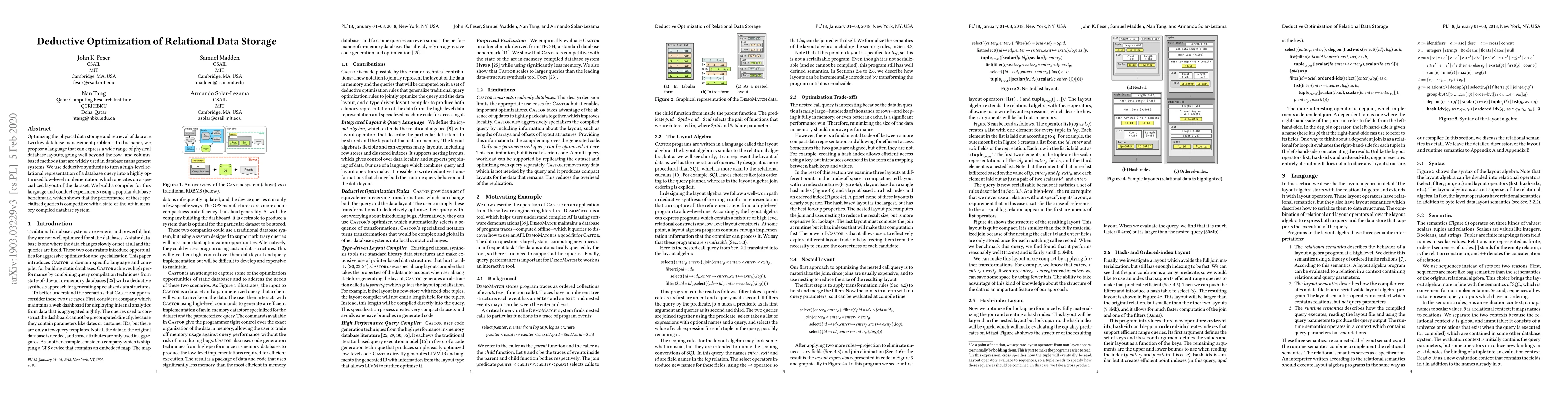 Optimizing the physical data storage and retrieval of data are two key database management problems. In this paper, we propose a language that can express a wide range of physical database layouts, going well beyond the row- and column-based methods that are widely used in database management systems. We use deductive synthesis to turn a high-level relational representation of a database query into a highly optimized low-level implementation which operates on a specialized layout of the dataset. We build a compiler for this language and conduct experiments using a popular database benchmark, which shows that the performance of these specialized queries is competitive with a state-of-the-art in memory compiled database system.