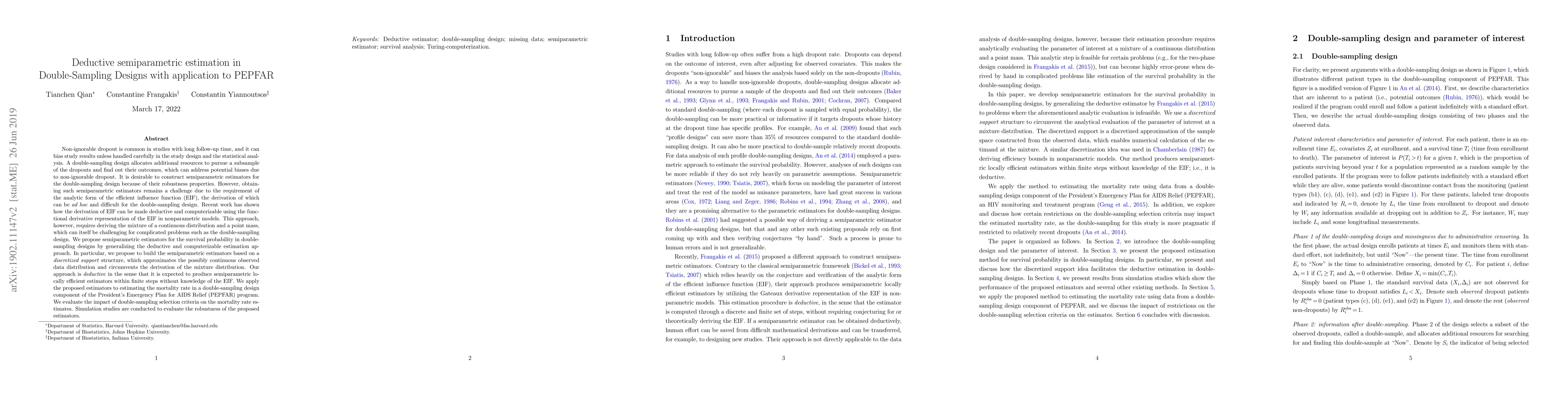 Non-ignorable dropout is common in studies with long follow-up time, and it can bias study results unless handled carefully. A double-sampling design allocates additional resources to pursue a subsample of the dropouts and find out their outcomes, which can address potential biases due to non-ignorable dropout. It is desirable to construct semiparametric estimators for the double-sampling design because of their robustness properties. However, obtaining such semiparametric estimators remains a challenge due to the requirement of the analytic form of the efficient influence function (EIF), the derivation of which can be ad hoc and difficult for the double-sampling design. Recent work has shown how the derivation of EIF can be made deductive and computerizable using the functional derivative representation of the EIF in nonparametric models. This approach, however, requires deriving the mixture of a continuous distribution and a point mass, which can itself be challenging for complicated problems such as the double-sampling design. We propose semiparametric estimators for the survival probability in double-sampling designs by generalizing the deductive and computerizable estimation approach. In particular, we propose to build the semiparametric estimators based on a discretized support structure, which approximates the possibly continuous observed data distribution and circumvents the derivation of the mixture distribution. Our approach is deductive in the sense that it is expected to produce semiparametric locally efficient estimators within finite steps without knowledge of the EIF. We apply the proposed estimators to estimating the mortality rate in a double-sampling design component of the President's Emergency Plan for AIDS Relief (PEPFAR) program. We evaluate the impact of double-sampling selection criteria on the mortality rate estimates.