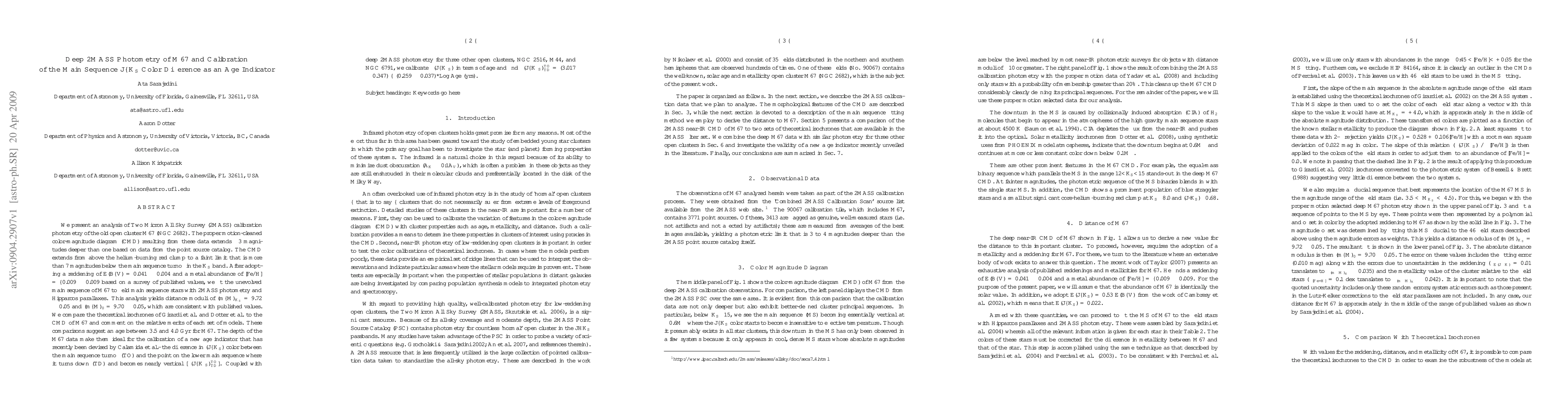 This paper analyzes deep 2MASS photometry of the open cluster M67 to calibrate the J-Ks color difference as an age indicator. The study finds an M67 age of 3.5-4.0 Gyr and derives a new age calibration for D(J-Ks), correlating the color difference with cluster age.