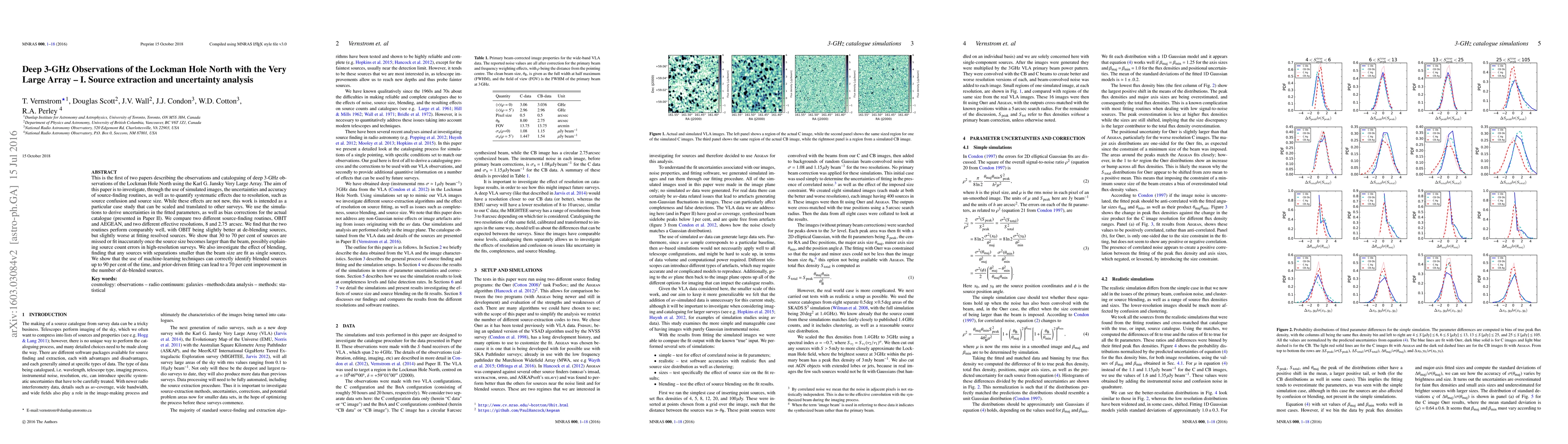 This paper explores the uncertainties and systematic effects in source extraction from deep 3-GHz observations of the Lockman Hole North using the Very Large Array. It compares two source-finding routines and identifies that blending and source size significantly impact accuracy, with machine-learning techniques showing promise in improving de-blending.