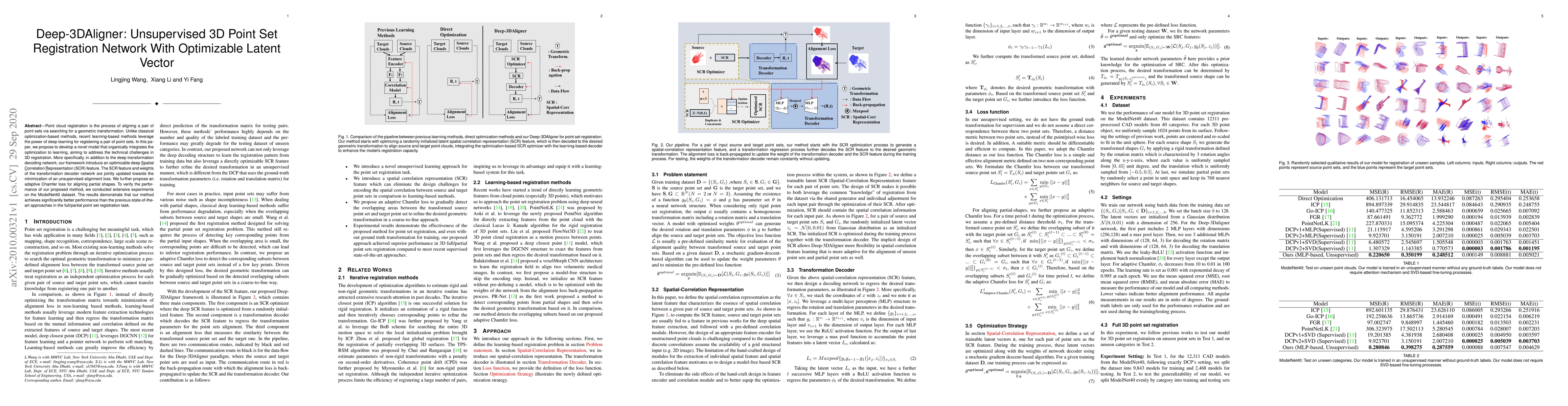 Deep-3DAligner introduces an unsupervised 3D point set registration network that integrates optimization with learning, featuring an optimizable Spatial Correlation Representation (SCR) for enhanced registration. The method outperforms previous state-of-the-art approaches on the ModelNet40 dataset for both full and partial point set registration.