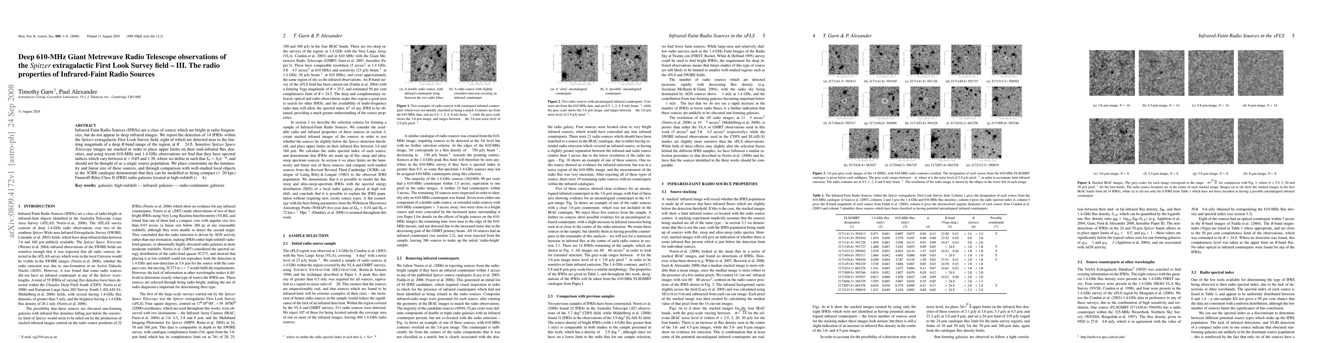 Infrared-Faint Radio Sources (IFRSs) are a class of source which are bright at radio frequencies, but do not appear in deep infrared images. We report the detection of 14 IFRSs within the Spitzer extragalactic First Look Survey field, eight of which are detected near to the limiting magnitude of a deep R-band image of the region, at R ~ 24.5. Sensitive Spitzer Space Telescope images are stacked in order to place upper limits on their mid-infrared flux densities, and using recent 610-MHz and 1.4-GHz observations we find that they have spectral indices which vary between alpha = 0.05 and 1.38, where we define alpha such that S = S_0 nu^(- alpha), and should not be thought of as a single source population. We place constraints on the luminosity and linear size of these sources, and through comparison with well-studied local objects in the 3CRR catalogue demonstrate that they can be modelled as being compact (< 20 kpc) Fanaroff-Riley Class II (FRII) radio galaxies located at high redshift (z > 4).