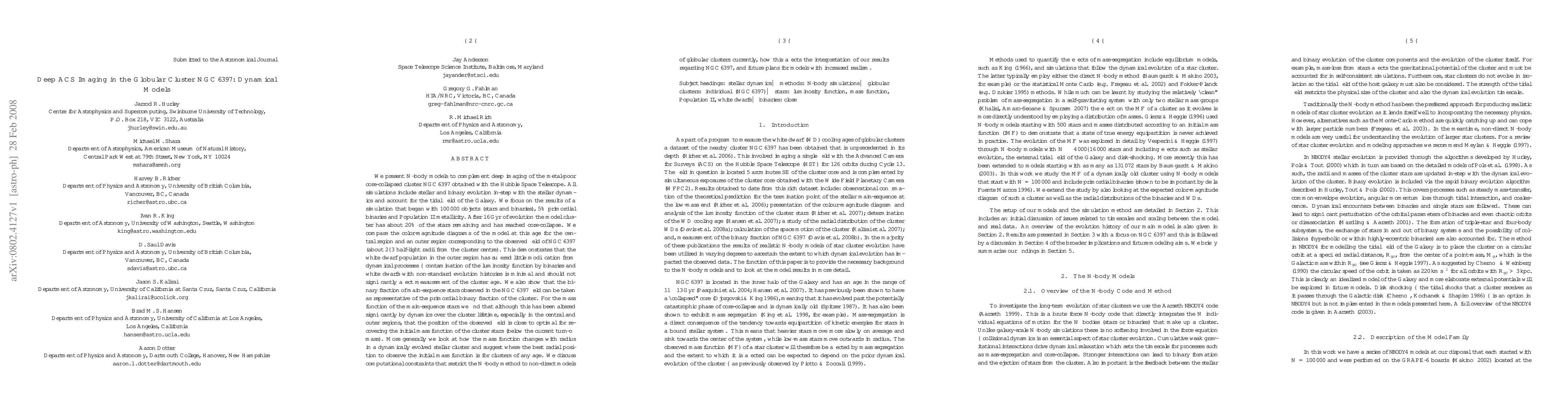 We present N-body models to complement deep imaging of the metal-poor core-collapsed cluster NGC6397 obtained with the Hubble Space Telescope. All simulations include stellar and binary evolution in-step with the stellar dynamics and account for the tidal field of the Galaxy. We focus on the results of a simulation that began with 100000 objects (stars and binaries), 5% primordial binaries and Population II metallicity. After 16 Gyr of evolution the model cluster has about 20% of the stars remaining and has reached core-collapse. We compare the color-magnitude diagrams of the model at this age for the central region and an outer region corresponding to the observed field of NGC6397 (about 2-3 half-light radii from the cluster centre). This demonstrates that the white dwarf population in the outer region has suffered little modification from dynamical processes - contamination of the luminosity function by binaries and white dwarfs with non-standard evolution histories is minimal and should not significantly affect measurement of the cluster age. We also show that the binary fraction of main-sequence stars observed in the NGC6397 field can be taken as representative of the primordial binary fraction of the cluster. For the mass function of the main-sequence stars we find that although this has been altered significantly by dynamics over the cluster lifetime, especially in the central and outer regions, that the position of the observed field is close to optimal for recovering the initial mass function of the cluster stars (below the current turn-off mass). More generally we look at how the mass function changes with radius in a dynamically evolved stellar cluster and suggest where the best radial position to observe the initial mass function is for clusters of any age.