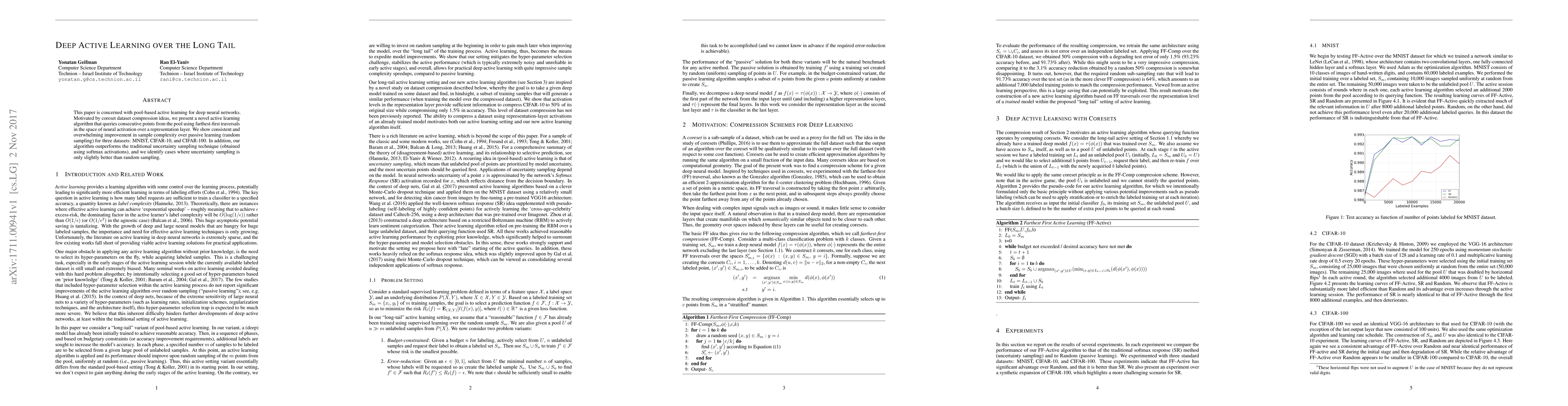 This paper is concerned with pool-based active learning for deep neural networks. Motivated by coreset dataset compression ideas, we present a novel active learning algorithm that queries consecutive points from the pool using farthest-first traversals in the space of neural activation over a representation layer. We show consistent and overwhelming improvement in sample complexity over passive learning (random sampling) for three datasets: MNIST, CIFAR-10, and CIFAR-100. In addition, our algorithm outperforms the traditional uncertainty sampling technique (obtained using softmax activations), and we identify cases where uncertainty sampling is only slightly better than random sampling.