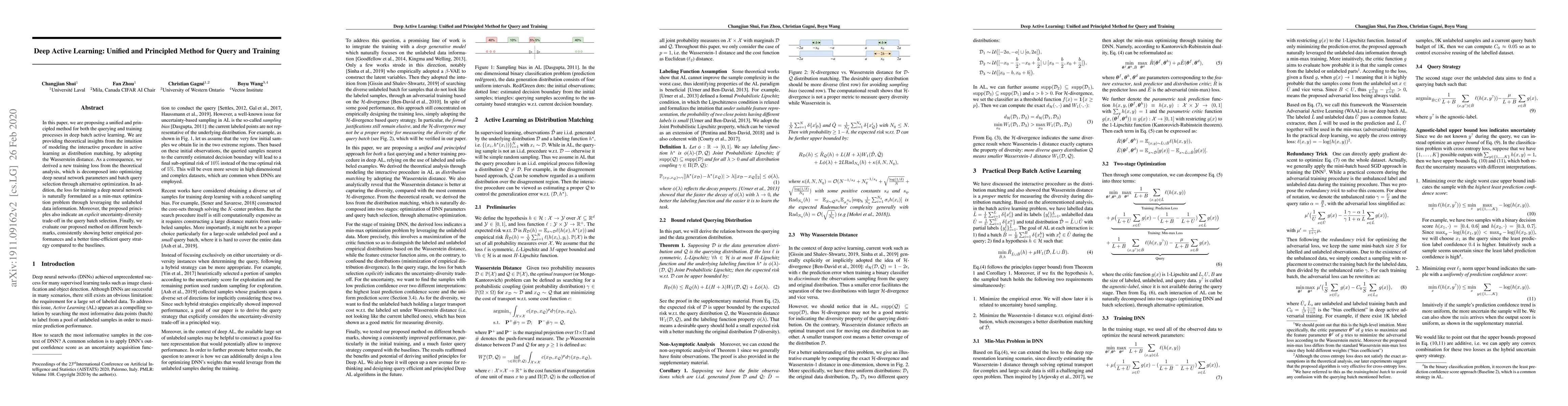 This paper proposes a unified method for deep batch active learning that optimizes both query selection and neural network training using distribution matching via Wasserstein distance. The method introduces a new training loss and demonstrates improved empirical performance and efficiency over baselines.