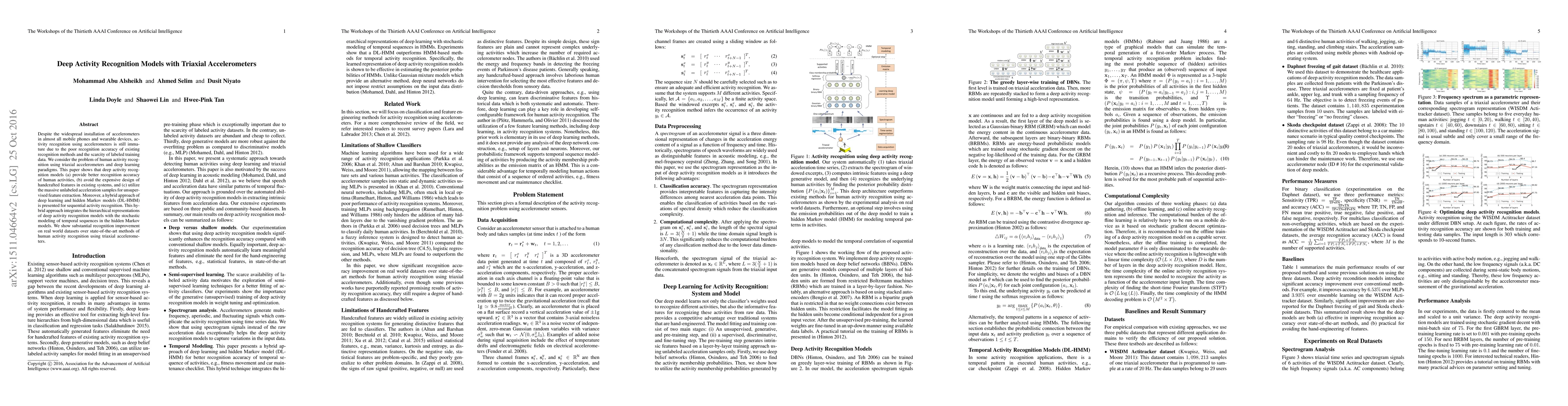 This paper proposes deep activity recognition models using triaxial accelerometers to improve human activity recognition accuracy and leverages deep learning for better feature extraction. A hybrid deep learning and hidden Markov model approach further enhances recognition performance on real-world datasets.