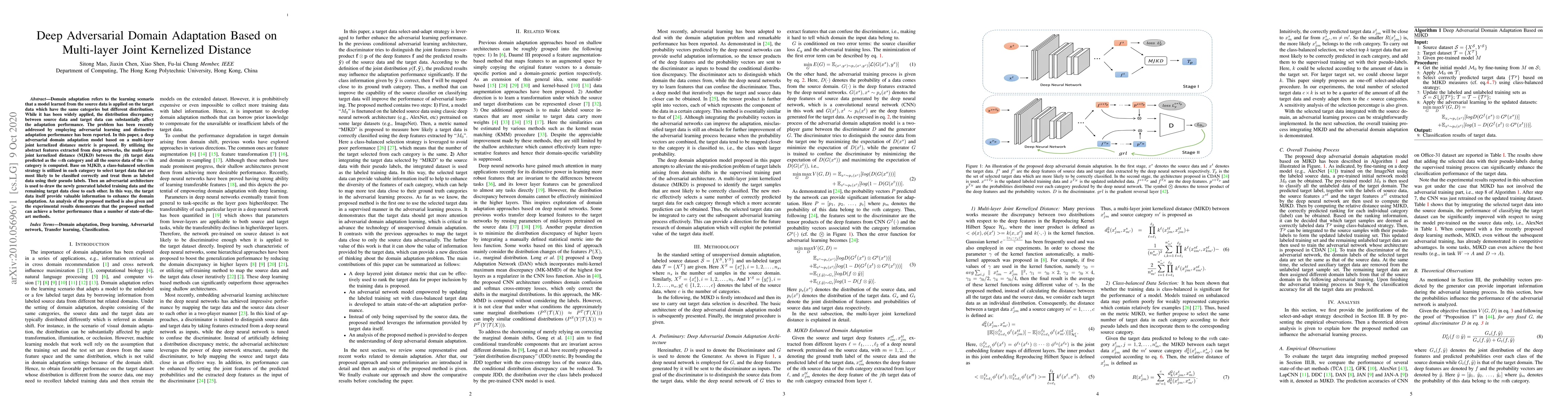 A deep learning model is proposed to improve domain adaptation by using a multi-layer joint kernelized distance metric to select target data for labeling and generating new labeled training data.