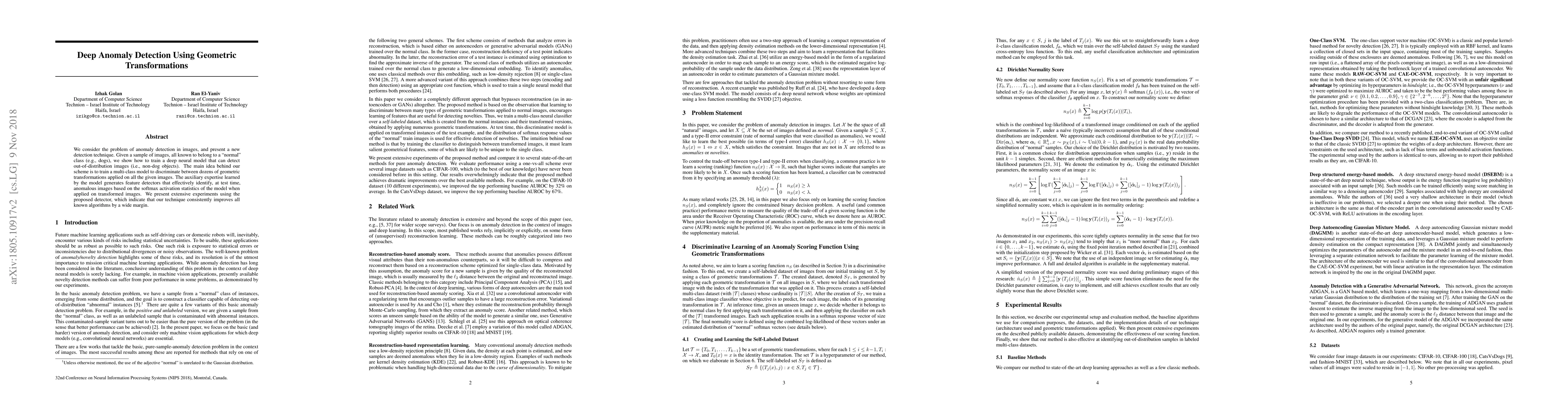 This paper introduces a novel deep anomaly detection technique using geometric transformations to identify out-of-distribution images. The method trains a multi-class model on transformed normal images, which then effectively detects anomalies based on softmax activation statistics, outperforming existing state-of-the-art methods.
