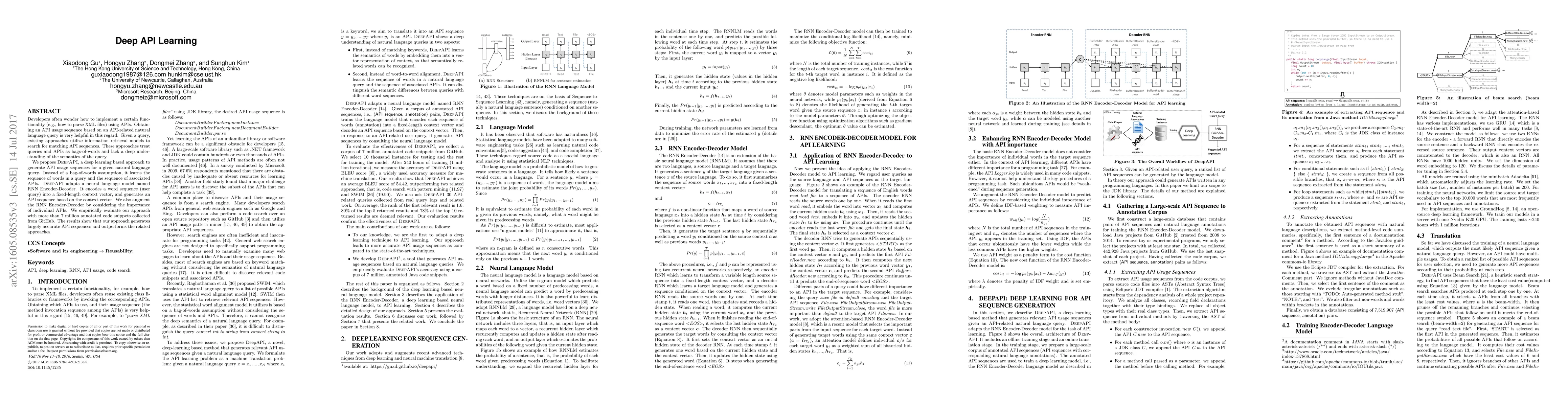 Developers often wonder how to implement a certain functionality (e.g., how to parse XML files) using APIs. Obtaining an API usage sequence based on an API-related natural language query is very helpful in this regard. Given a query, existing approaches utilize information retrieval models to search for matching API sequences. These approaches treat queries and APIs as bag-of-words (i.e., keyword matching or word-to-word alignment) and lack a deep understanding of the semantics of the query. We propose DeepAPI, a deep learning based approach to generate API usage sequences for a given natural language query. Instead of a bags-of-words assumption, it learns the sequence of words in a query and the sequence of associated APIs. DeepAPI adapts a neural language model named RNN Encoder-Decoder. It encodes a word sequence (user query) into a fixed-length context vector, and generates an API sequence based on the context vector. We also augment the RNN Encoder-Decoder by considering the importance of individual APIs. We empirically evaluate our approach with more than 7 million annotated code snippets collected from GitHub. The results show that our approach generates largely accurate API sequences and outperforms the related approaches.