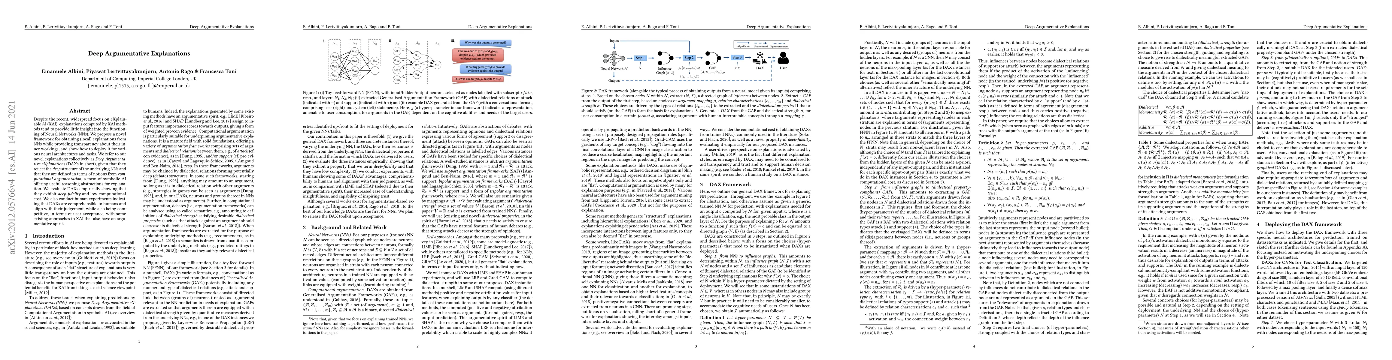 This paper proposes Deep Argumentative eXplanations (DAXs) as a novel framework for explaining neural networks by reflecting their inner workings through computational argumentation. The authors demonstrate DAXs' fidelity, low computational cost, and their alignment with human judgment through empirical and human evaluations.