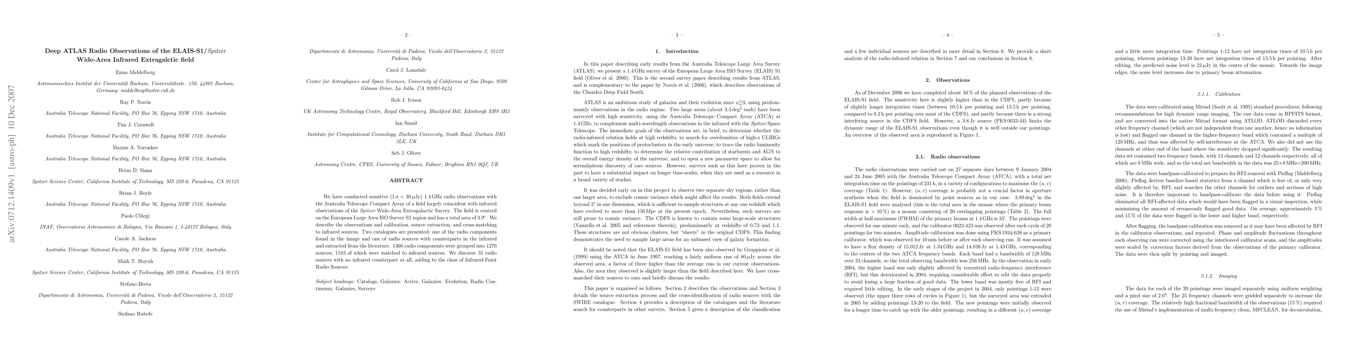 We have conducted sensitive (1 sigma<30 uJy) 1.4 GHz radio observations with the Australia Telescope Compact Array of a field largely coincident with infrared observations of the Spitzer Wide-Area Extragalactic Survey. The field is centred on the European Large Area ISO Survey S1 region and has a total area of 3.9 deg. We describe the observations and calibration, source extraction, and cross-matching to infrared sources. Two catalogues are presented; one of the radio components found in the image and one of radio sources with counterparts in the infrared and extracted from the literature. 1366 radio components were grouped into 1276 sources, 1183 of which were matched to infrared sources. We discover 31 radio sources with no infrared counterpart at all, adding to the class of Infrared-Faint Radio Sources.