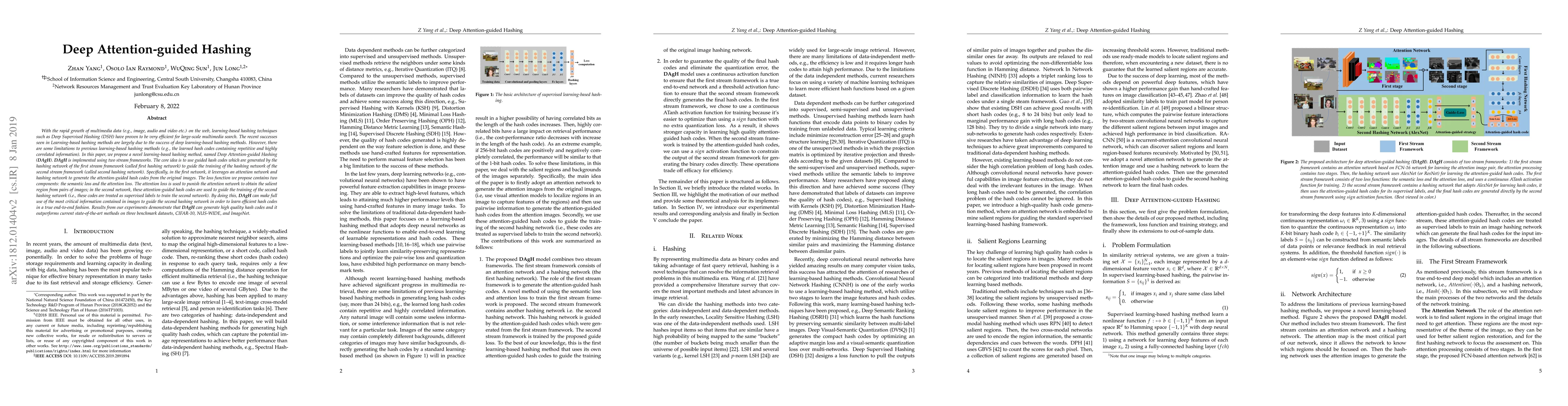 The paper proposes Deep Attention-guided Hashing (DAgH), a novel learning-based hashing method that uses two stream frameworks to generate efficient hash codes by leveraging attention-guided hash codes from the first stream to guide the training of the second stream. Experimental results show that DAgH outperforms current state-of-the-art methods on CIFAR-10, NUS-WIDE, and ImageNet datasets.
