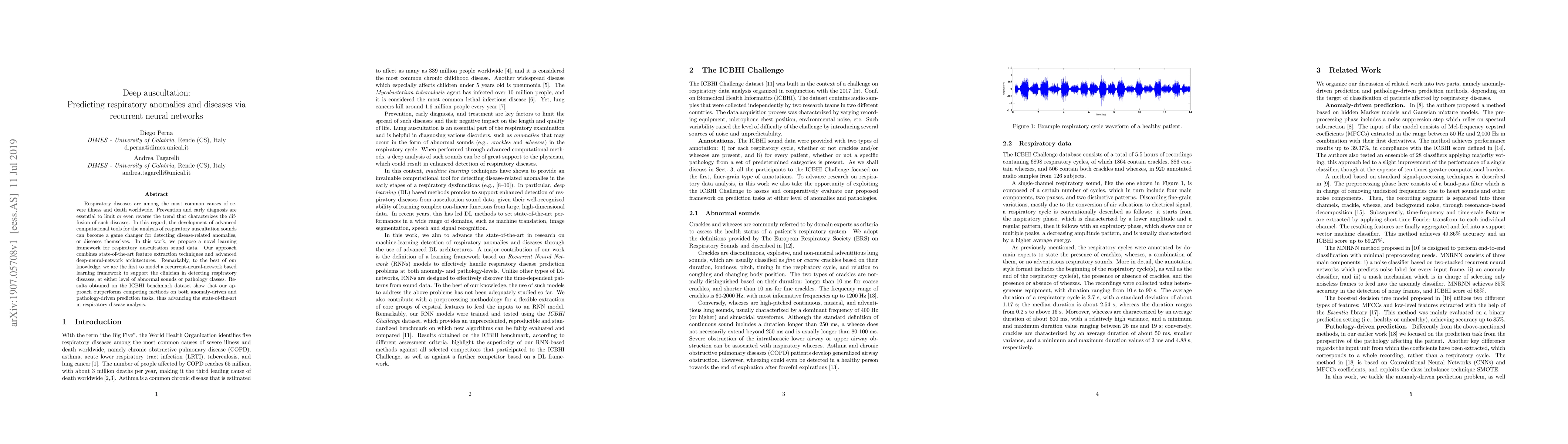 Respiratory diseases are among the most common causes of severe illness and death worldwide. Prevention and early diagnosis are essential to limit or even reverse the trend that characterizes the diffusion of such diseases. In this regard, the development of advanced computational tools for the analysis of respiratory auscultation sounds can become a game changer for detecting disease-related anomalies, or diseases themselves. In this work, we propose a novel learning framework for respiratory auscultation sound data. Our approach combines state-of-the-art feature extraction techniques and advanced deep-neural-network architectures. Remarkably, to the best of our knowledge, we are the first to model a recurrent-neural-network based learning framework to support the clinician in detecting respiratory diseases, at either level of abnormal sounds or pathology classes. Results obtained on the ICBHI benchmark dataset show that our approach outperforms competing methods on both anomaly-driven and pathology-driven prediction tasks, thus advancing the state-of-the-art in respiratory disease analysis.