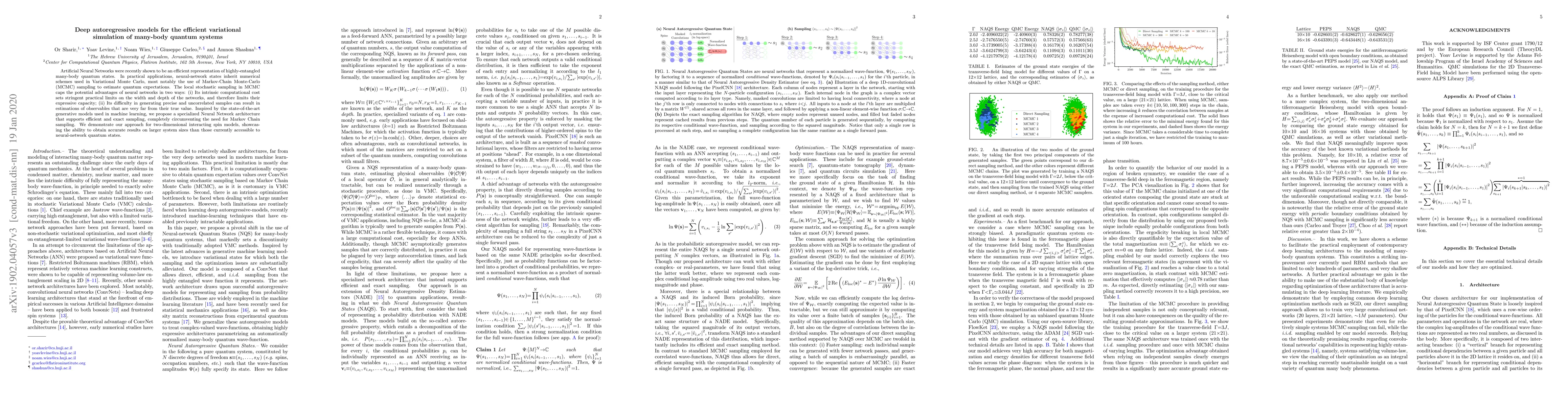 This paper proposes a specialized neural network architecture for efficient variational simulation of many-body quantum systems, eliminating the need for Markov Chain sampling to achieve exact and precise sampling, thereby overcoming limitations in current neural-network quantum states. The approach is demonstrated on two-dimensional spin models, showing results on larger systems than previously possible.