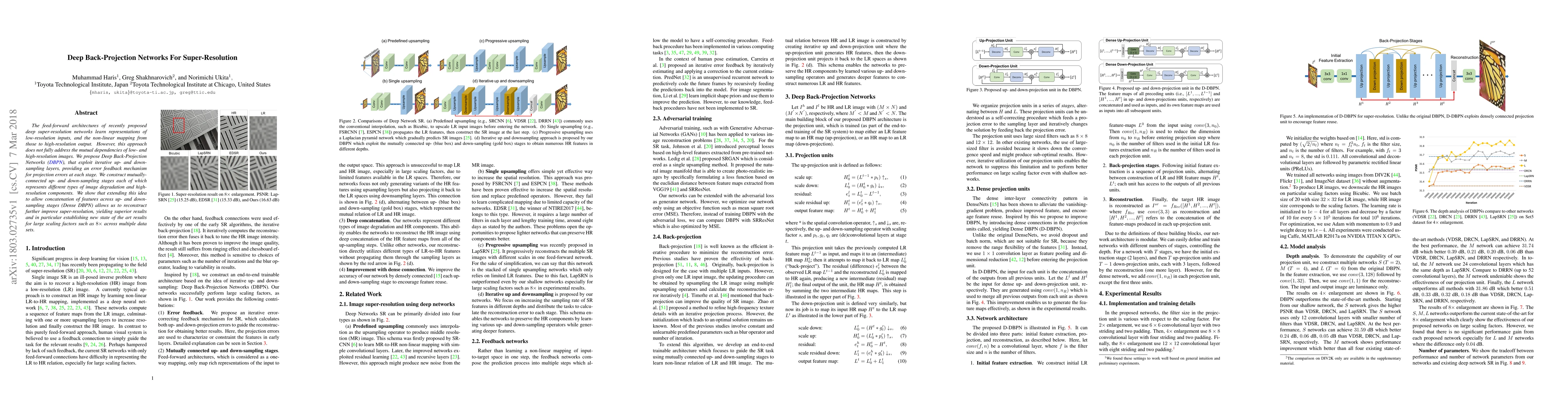 Deep Back-Projection Networks (DBPN) utilize iterative up- and down-sampling layers to address mutual dependencies between low- and high-resolution images, achieving superior super-resolution results. The Dense DBPN variant, which concatenates features across stages, sets new state-of-the-art performance for large scaling factors like 8x.