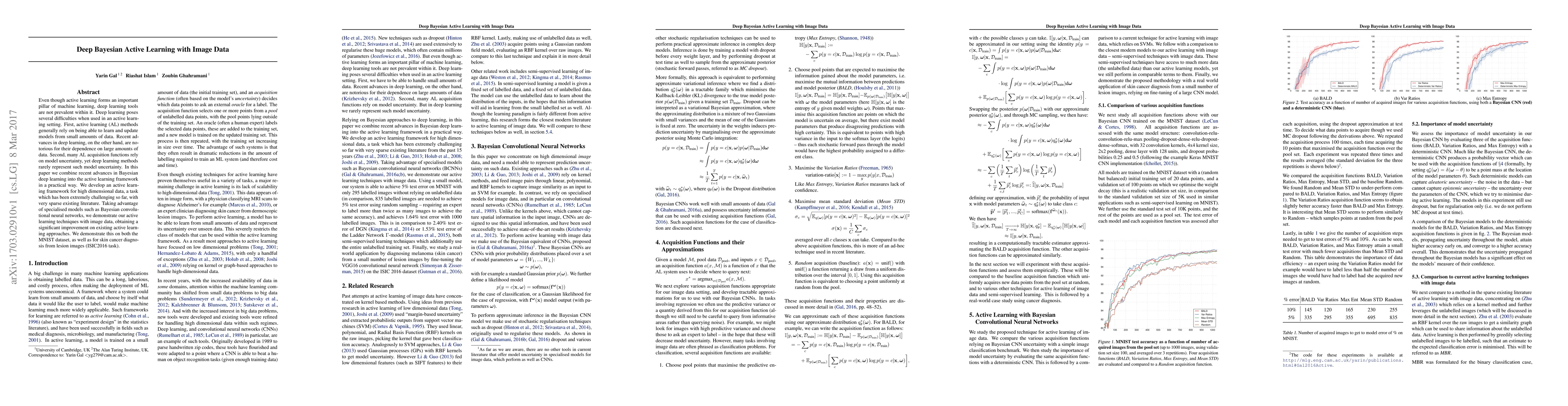 This paper proposes a deep Bayesian active learning framework to address the challenges of using deep learning in active learning settings, particularly with image data. It leverages Bayesian convolutional neural networks to effectively manage model uncertainty and demonstrates significant improvements over existing methods on MNIST and skin cancer diagnosis datasets.
