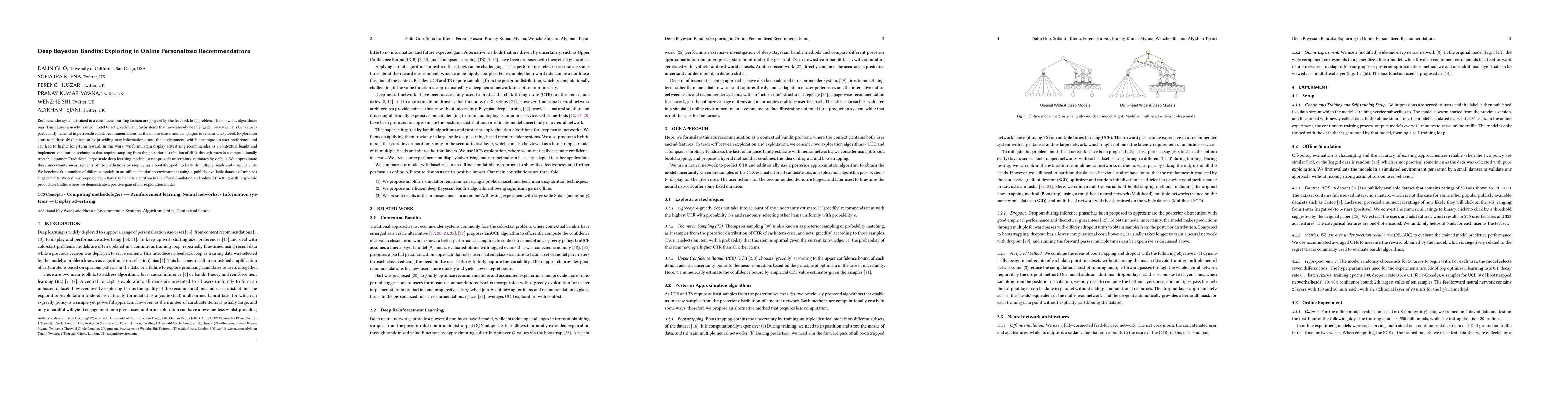 A new algorithm called Deep Bayesian Bandits is proposed to improve personalized ad recommendations in online advertising, addressing the feedback loop problem and providing a more exploration-efficient approach.