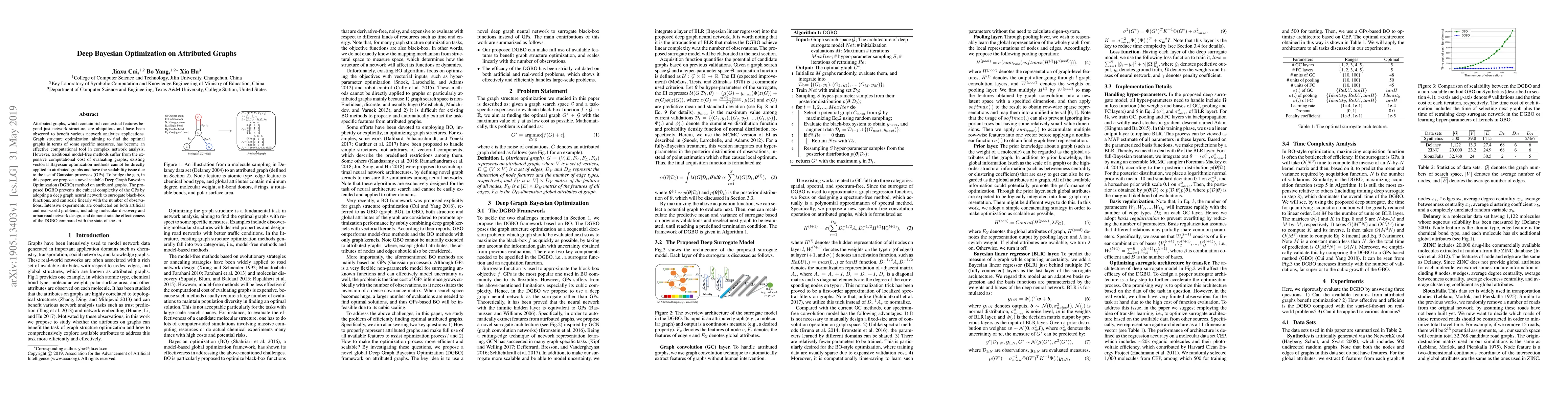 This paper introduces a scalable Deep Graph Bayesian Optimization (DGBO) method for optimizing attributed graphs, addressing the high computational costs of traditional methods and the scalability issues of Gaussian processes. The DGBO leverages deep graph neural networks to efficiently surrogate black-box functions, demonstrating effectiveness in applications like molecular discovery and urban road network design.