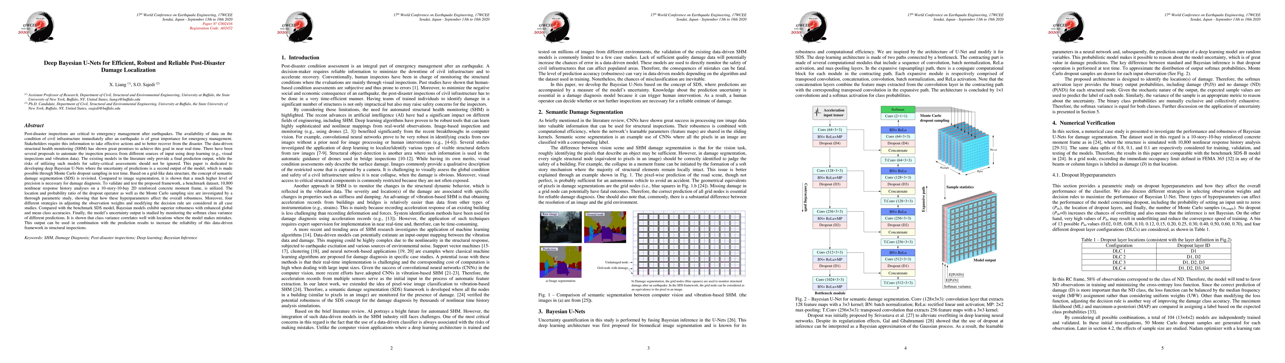 This paper develops deep Bayesian U-Nets for post-disaster damage localization, providing both prediction and uncertainty outputs. The model demonstrates superior robustness and accuracy compared to existing benchmarks, with uncertainty outputs correlating with model mistakes, enhancing reliability for safety-critical assessments.