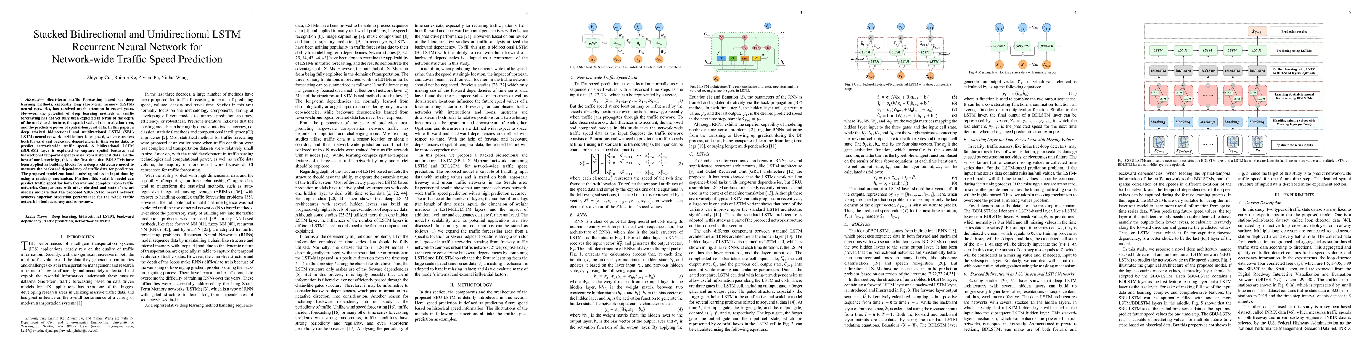 This paper proposes a deep stacked bidirectional and unidirectional LSTM (SBU-LSTM) neural network for network-wide traffic speed prediction, which effectively captures spatial features and bidirectional temporal dependencies. The model outperforms classical and state-of-the-art methods in accuracy and robustness.