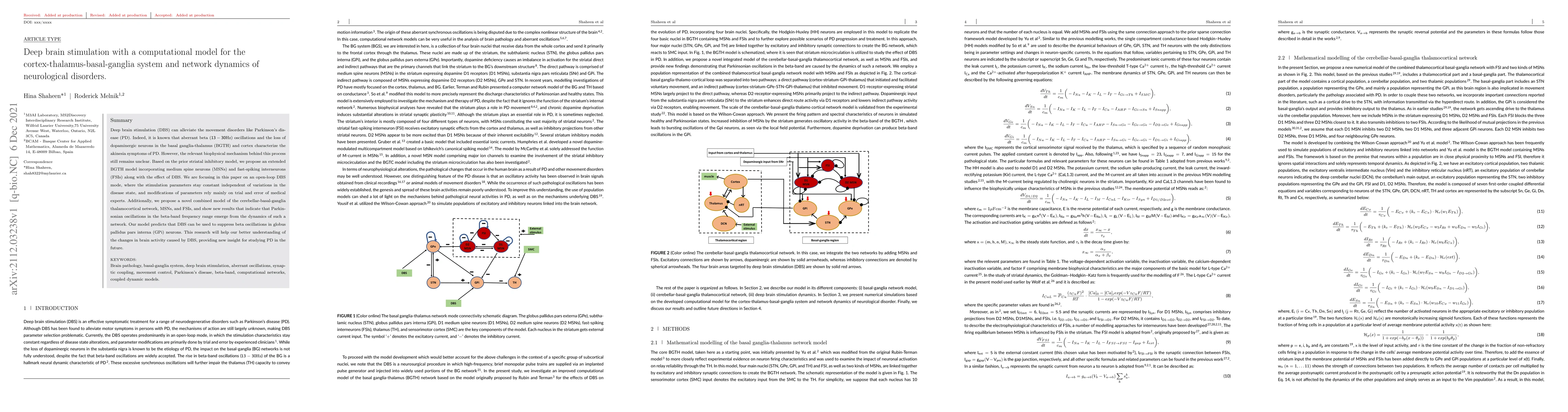 This paper proposes an extended computational model of the cortex-thalamus-basal ganglia system to understand the dynamics of neurological disorders like Parkinson's disease. It demonstrates that deep brain stimulation can suppress beta oscillations, offering insights into the mechanisms behind DBS and its potential to alleviate movement disorders.